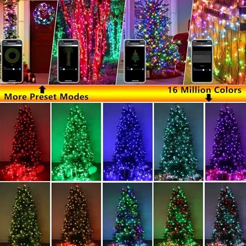 Menu 1. We require immediate payment. 2. We currently accept payment via eBay managed payments only. 3. Once payment is cleared, we will dispatch your shipment within 1-3 business days. Please refer to the "Shipping" tab for more information regarding shipping speed to your destination. Smart Color Changing Christmas Lights, 72ft 200 LED RGB Christmas Tree Lights Remote & App Controlled String Lights for Outdoor Indoor Christmas Decoration Product description Vivid Colors and Modes: Enhance your holiday lighting with 's smart string lights, featuring a wide range of colors. Options include single-color, bi-color, tri-color, and multi-color for year-round use. Perfect for various occasions such as Christmas, July 4th, Halloween, and more APP and Remote Control: Use the 40-key remote or intuitive app to control 16 million colors, adjust brightness, explore preset modes, and access music modes. Set custom timers via the app for tailored lighting schedules Music Sync: Built-in high-sensitivity microphone allows lights to change colors with your music's beat. Ideal for creating lively atmosps for parties, birthdays, weddings, and other events Timer and Memory Function: Set your lights to turn on and off at chosen times with 3 timer options via the remote or app. The memory chip saves your last mode setting, eliminating daily resets Group Control: Easily set up and synchronize multiple units through the app for impressive outdoor displays. Group and control lights virtually with ease Warm Tips: 1. These RGB strings cannot be connected end-to-end. 2. The white color has a slight blue tint. 3. Remove the insulation sheet from the remote and point it directly at the controller for proper functionality PLEASE MESSAGE US IF YOU HAVE ANY OTHER QUESTIONS, AND MANY THANKS FOR READING ALL OF THIS. Copyright ©#. All Rights Reserved.