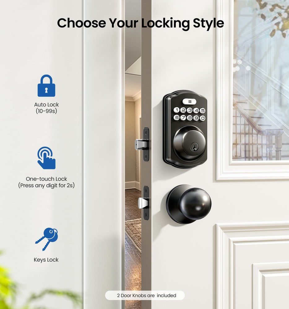 Smart Electronic Keyless Entry Door Lock with Backlit Keypad & 2 Knobs – Secure Deadbolt