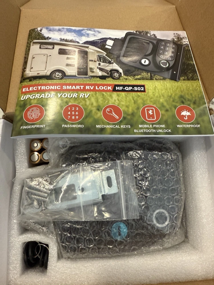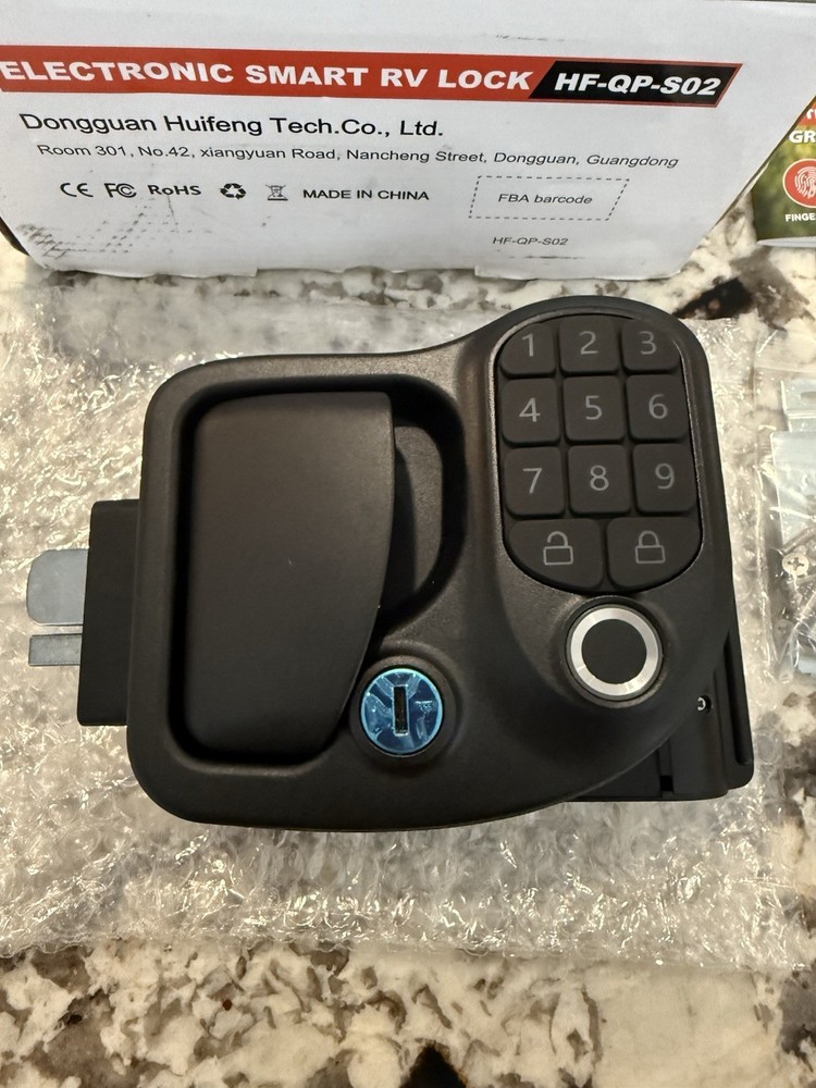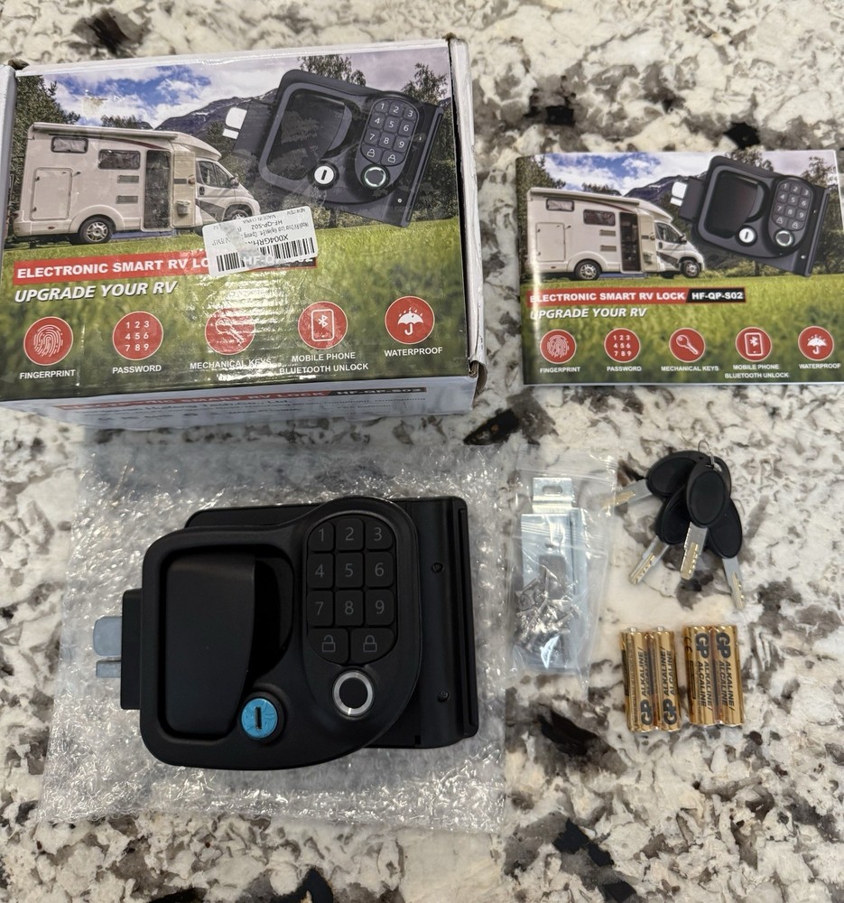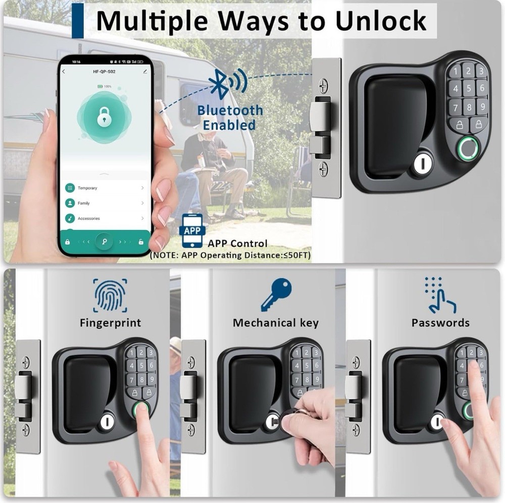 RV Door Lock Keyless Entry, 4-in-1 RV Keyless Entry with Bluetooth, Fingerprint, Keypad, Camper Door Lock, RV Door Latch for Camper, Lock Hole 3.75"x2.75"x1.5", Not fit Class A or Class C RVs