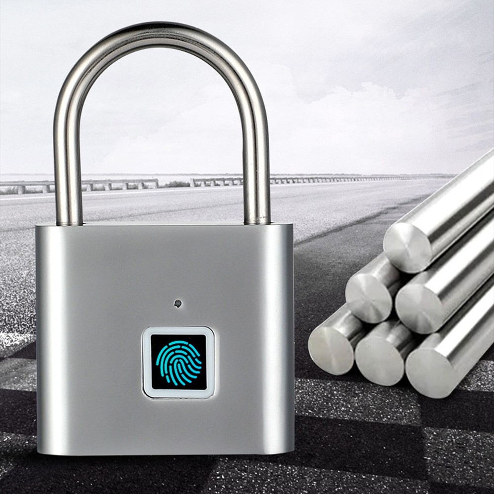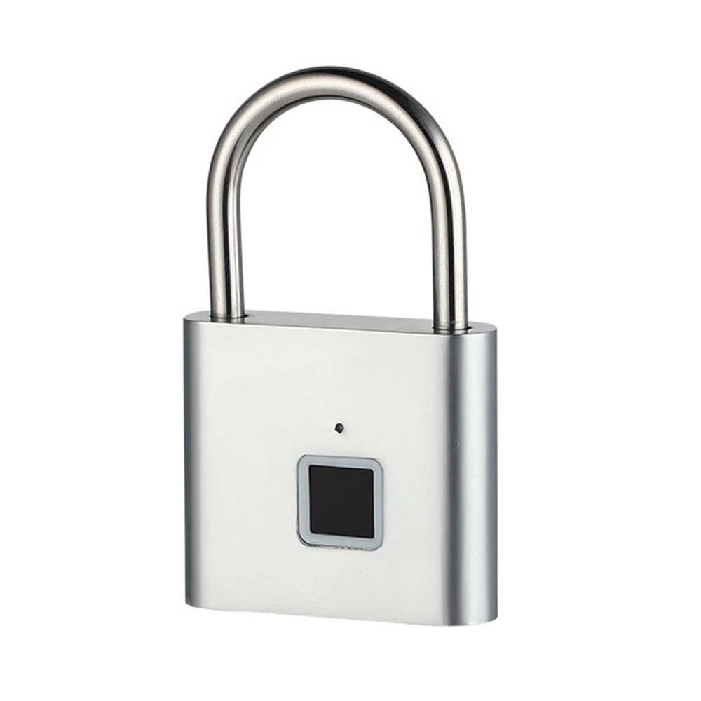 Smart Fingerprint Door Lock Keyless Anti-theft Security Padlock USB Rechargeable Features: *Safe and reliable ,unlock at one touch,your finger,is password now. *Unlock: It is easy to operate, stores up to 10 fingerprints, and is managed directly in the smart lock. *Unlocking Methods: This fingerprint padlock has 360 degree fingerprint acquisition function and only unlock for 1 second and quickly identify biometric locks to quickly identify your fingerprints. With LED Indicator: with red & blue indicator to represent different status. Fast Response: built-in advanced CPU, great identification, it only takes 1 second to unlock. *Superior Strength & Durability: made of zinc alloy body and stainless steel latch hook. *Low Battery Prompt: when battery capacity is low, the indicator will flash Red fast to remind you. *USB Rechargeable: Built in rechargeable lithium battery, Can be easily charged by USB cable (micro USB port is on bottom),Low power consumption and long standby time,If the battery is short of power, it can be unlocked in an emergency. The longest standby time is up to half a year; Specifications: Colour: Silver/Black; Model: O10; Material: Zinc alloy; Case material: kirsite; Lock Size: 46*40*16mm; Lock beam diameter: 5mm; Fingerprint shape: Square; Fingerprint capacity: Record 10 times and save 10 groups; LED light: Three color light: red / blue / green; Battery: 3.7V lithium battery; Working voltage: 3.0-4.2V; Charging + Emergency: USB interface: MICRO; Low battery alarm: 3.5V; full charging time:1-2hours; full charged unlock times:9000times; Standy Time:12 Months; Package Included: 1 x Fingerprint Padlock; 1 x USB-Micro Charging Cable; 1 x User Manual; 1 x Box;