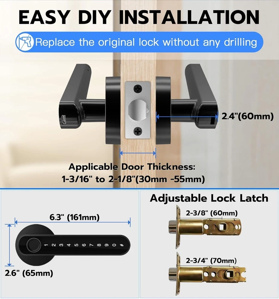 Smart Fingerprint Door Lock - Keyless Entry with App Control & 4 Unlock Methods ‹ › ‹ › ‹ › ‹ › ‹ › ‹ › ‹ › ‹ › Smart Fingerprint Door Lock - Keyless Entry with App Control & 4 Unlock Methods Unlock Your World Effortlessly: 4 Unlocking Methods: Seamlessly access your home with fingerprint unlock, passcode unlock, App control via Bluetooth, or a backup mechanical key. Experience the pinnacle of convenience and security. Impeccable Security Features: High Security & Durability: Crafted from robust Alloy Steel and Zinc, this door lock provides an added layer of safety, perfect for bedrooms, hotels, apartments, and private spaces. Simple Installation: DIY Friendly: Replace your original lock effortlessly with just a screwdriver (included). No additional drilling or locksmith needed. The reversible door handle caters to both left and right-handed doors. Extended Battery Life: Long-lasting Performance: This electronic lock offers low power consumption, assuring over a year of battery life. Receive timely reminders for low battery, and when in need, simply utilize a power bank for emergency access. Unmatched Customer Support: Peace of Mind: Enjoy a 12-month Free Trial and free lifetime technical support. Should you require assistance or wish to replace or refund, our hassle-free customer service stands by your side. Why Choose Our Smart Fingerprint Door Lock? Elevate your home's security with our Smart Fingerprint Door Lock, where cutting-edge technology meets exceptional convenience. With its versatile unlocking methods and robust construction, this lock is designed for modern living. Say goodbye to fumbling for keys and welcome a new era of intelligent home security. Transform your entryway today with our state-of-the-art Smart Fingerprint Door Lock. Shipping Free & Fast Shipping - We offer free shipping to most of the USA with a normal delivery time of 3-7 days. However, due to the current situation, additional delivery time (up to 3 weeks) may be required for some items. Alternative Carriers - We may use alternative carriers (e.g. USPS, FedEx, UPS, etc.) to ensure your package arrives safely and on time. Due to the use of multiple carriers, we are unable to provide a tracking number automatically. Handling Time - Orders are processed and shipped within 1-2 business days of receiving cleared payment. Shipping Restrictions - Shipping to Alaska, Hawaii, Puerto Rico, Guam, and other US territories may incur shipping charges or delivery restrictions. Please contact us before ordering, or your order can be refunded/cancelled. State Restrictions - There may be restrictions based on your state of purchase. For example, certain items may not be shipped to California due to state regulations. Contact for Tracking Updates - If you require tracking updates or have any concerns about the delivery of your order, please feel free to contact us, and we will be happy to assist you. Return 30-Day Hassle-Free Returns - We want you to be completely satisfied with your purchase. If you are not, you can return the item within 30 days of receiving it for a full refund or exchange. Easy Return Process - To start a return, simply contact us and we will provide you with a prepaid return shipping label and detailed instructions. Restocking Fee - There are no restocking fees for returns. However, the buyer is responsible for return shipping costs if the return is not due to a seller's error. Refund Processing Time - Refunds will be processed within 5 business days of receiving the returned item in its original condition. Payment We accept all major credit cards, PayPal, and Apple Pay for your convenience. Your payment information is secure and encrypted to ensure a safe and seamless transaction. Please complete your payment within 3 days of purchase to avoid any delays in shipping. Feedback Your feedback is extremely important to us. We strive to provide the best products and customer service possible. If you are satisfied with your purchase, please take a moment to leave us a positive review. If you have any concerns or issues with your order, please contact us before leaving negative feedback. We are committed to resolving any problems and ensuring your satisfaction. Contact Us If you have any questions or concerns, please feel free to reach out to our customer support team. You can contact us through the eBay messaging system. We are available Monday to Friday, 9:00 am to 5:00 pm EST, and we will do our best to respond to your inquiry within 24 hours. Buy it now and enjoy a pleasant shopping experience! UPC: Not Set Model: Not Set Unit Quantity: 2 Material: Alloy Steel,Zinc Suitable For: Front Door,Bedroom,Interior,Room,Home,Hotel,Garage,Apartment,Cloakroom,Pantry,Closet,Office,School Mounting: Universal Features: Keyless,Fingerprint Unlock,Passcode Unlock,App Controlled,Bluetooth Connectivity,Backup Mechanical Key Unlock,Auto Lock,Passage Mode,Anti-Peeping Passcode,Long Battery Life,Low Power Consumption Items Included: Key,Mechanical Keys,User Manual,Lock Latch,Spindle,Connecting Pipe,Screwdriver,All Screws,Front Handle,Rear Handle,Strike Plate,Strike Hole Cover Brand: Unbranded Type: Smart Lock Color: Black Finish: Oil Rubbed Throw Length: Not Set Item Height: Not Set Item Width: Not Set Cross Bore Diameter: Standard MPN: Not Set Number in Pack: 1 Style: Modern Item Depth: 2.6 in Country/Region of Manufacture: Not Set ANSI Grade: Not Specified Item Weight: 2 lb Door Handing: Universal/Reversible Manufacturer Warranty: Not Set Unit Type: lb Fixings Supplied: Not Set
