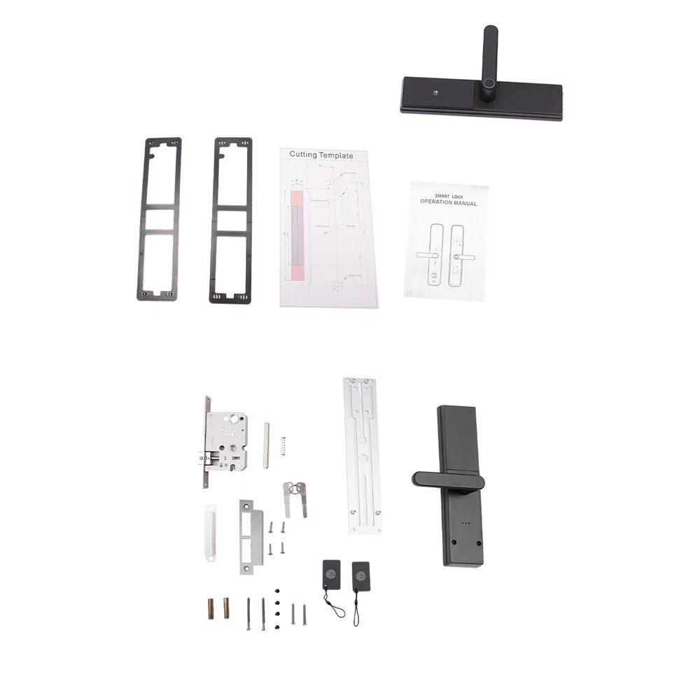 Fingerprint Password Entry Home Lock Smart Door Lock Digital Keypad Door Lock Description Are you still struggling with the security of your door locks, please look at our smart door lock. Our product has multiple unlocking methods, adopts high-end technology, and has multiple protective functions. It is a sensitive, safe, and convenient smart door lock that protects your safety. Key Features Made to Last: This product is made of high-quality aluminum alloy by spraying process, sturdy and durable, and can be used for a long time without frequent replacement. High Safety: If the fingerprint or password is incorrectly entered 5 times in a row, the door lock is pried or the battery is below 20%, it will sound an alarm, providing all-around protection for your safety. The shielded electromagnetic interference technology prevents the opening of the little black box. The virtual position anti-peep password technology also protects your privacy. Multiple Unlocking Options: The locking options for this product are fingerprint, password, key, IC proximity card, temporary password, and remote unlocking, which provide you with convenient unlocking, and you don't need to worry about not being able to unlock the door due to dropping the key anymore. Sensitive Touch and Control: Semiconductor fingerprint head design and IC unlocking technology ensure easy unlocking without the need to memorize the code. Thoughtful Design: You can use Bluetooth to connect to your phone APP to manage the door lock, send temporary codes remotely, and provide temporary access for friends, family, and visitors. With type-c emergency charging design, you don't need to worry about not being able to open the lock because it's out of battery. Ideal Gift: With good performance and a modern appearance, it can be used as an ideal housewarming gift for parents, friends, and lovers so that they can also enjoy a more convenient and safe life. Protective Package: To prevent the product from being damaged during transportation, we packed it with sponges to protect your products to the maximum extent possible. Good Customer Service: We aim to provide quality products and services. If you have problems, please feel free to contact us. We will reply and solve the problem for you as soon as possible. Details Flexible Handle: This design allows you to adjust the door handle to the actual door you are installing without having to worry about the door not matching the lock. Adjustable Base Plate: With a reasonable hole design, it does not need to punch the holes again for both new and old doors, and ensures easy installation. Application This product is suitable for doors in homes, hotels, apartments, guesthouses, etc. Specification Color: Black Style: Modern Material: Aluminum Alloy Process: Spraying Assembly Required: Yes Mounting Type: Door Mount Operating Current: <300MA Batteries: 4* AA Batteries(Not Included) Applicable Door Thickness: 35-55mm/1.38~2.2in Operating Temperature: -10~60°C/14~140° Number of Fingerprints: 50 Groups Number of Passwords and Cards: 100 Groups Total Product Size: 30*6.8*7.2cm/11.81*2.68*2.83in Package Size: 36.2*11*8.5cm/14.25*4.33*3.35in Gross Weight: 1.7kg/3.75 lbs Net Weight: 1.54kg/3.4 lbs Package Included 1*Smart Door Lock 1*English Manual 2*Keys 2*Proximity Cards Other Accessories for Assembly Notes Please make sure that the size fits your door before ordering. It is recommended to install it by a professional. Please read the operating manual completely before use. And pay particular attention to the safety instructions included. Please allow the slight color difference caused by the shooting light and 1-3cm error due to manual measurement, and make sure you do not mind before ordering. Process Spraying Assembly Required Yes Mounting Type Door Mount Batteries 4* AA Batteries(Not Included) Applicable Door Thickness 35-55mm/1.38~2.2in Operating Temperature -10~60°C/14~140° Number of Fingerprints 50 Groups Number of Passwords and Cards 100 Groups Total Product Size 30*6.8*7.2cm/11.81*2.68*2.83in Package Size 36.2*11*8.5cm/14.25*4.33*3.35in Gross Weight 1.7kg/3.75 lbs Net Weight 1.54kg/3.4 lbs Brand Unbranded Material Aluminum Alloy Color Black Style Modern