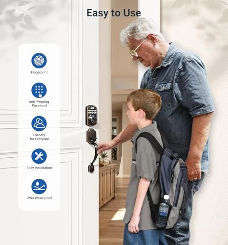 Return Policy Fast Delivery Trusted seller Fingerprint Door Lock Set, Keyless Entry Door Lock, Front Door Handle Set, Electronic Keypad Deadbolt with Lever Handle, 2 Keys, Auto Lock, Code Door Lock, Easy to Install, Oil Rubbed Bronze Product Description Keyless Entry Deadbolt with Handle Set: smart door lock has 3 ways to unlock: 20 fingerprints + 20 passcodes + 2 keys (no App or Wi-Fi required). The fingerprint door lock identifies your fingerprint in 0.3s and unlocks your door in 1s. Your fingerprint is the key Auto Lock & One-touch Lock: The electronic keypad deadbolt can be set to lock automatically 10-99s after the door closed. It can also be locked from outside by pressing and holding any key for 2s Keypad Door Lock with Handle: The door lock with high-quality deadbolt is tested ANSI Grade 3 and BHMA. The handleset adds classy and unique style to your home. One-time Password & Anti-peeking Password: One-time password is assigned to temporary visitors and is automatically deleted after use. Moreover, the anti-peeking password feature protects your password from being peeped, ensuring your home remains secure Easy Installation & Quality Guarantee: The door lock can be easily installed in minutes with just a screwdriver. Quality Assurance: offers a minimum 1-year warranty, online phone support from Monday to Friday, 9 AM to 5 PM PST, and 24/7 after-sales email service Shipping Returns Payment Shipping Shipping is FREE to all addresses other than APO/PO boxes in the lower 48 states. All our stock ships from US-based warehouses. Shipped via USPS or UPS (depending on location and package weight) Unless stated otherwise, all orders will ship within 24-72 hours of your payment being processed. Check our feedback to see the great reviews of FAST shipping we offer. Returns Seller does not accept returns Payment We currently accept payment via eBay managed payments only. Once payment is cleared, we will dispatch your shipment within 1-3 business days. Please refer to the "Shipping" tab for more information regarding shipping speed to your destination.