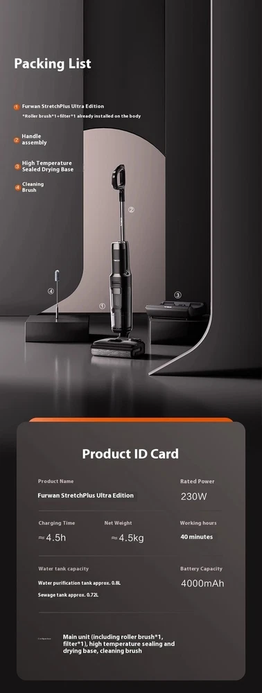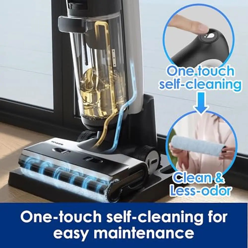 Smart Floor Cleaner Wet Dry Vacuum Cordless Mop Hard Floors Edge Cleaning 220V 13cm Ultra-Thin Flat Design Multi-Layer Front-End Capture with Zero Hair Tangles AI Red-Blue Ring Smart Dirt Detection 85°C High-Efficiency Sterilization 40-Minute Floor-Cleaning Batteries Life