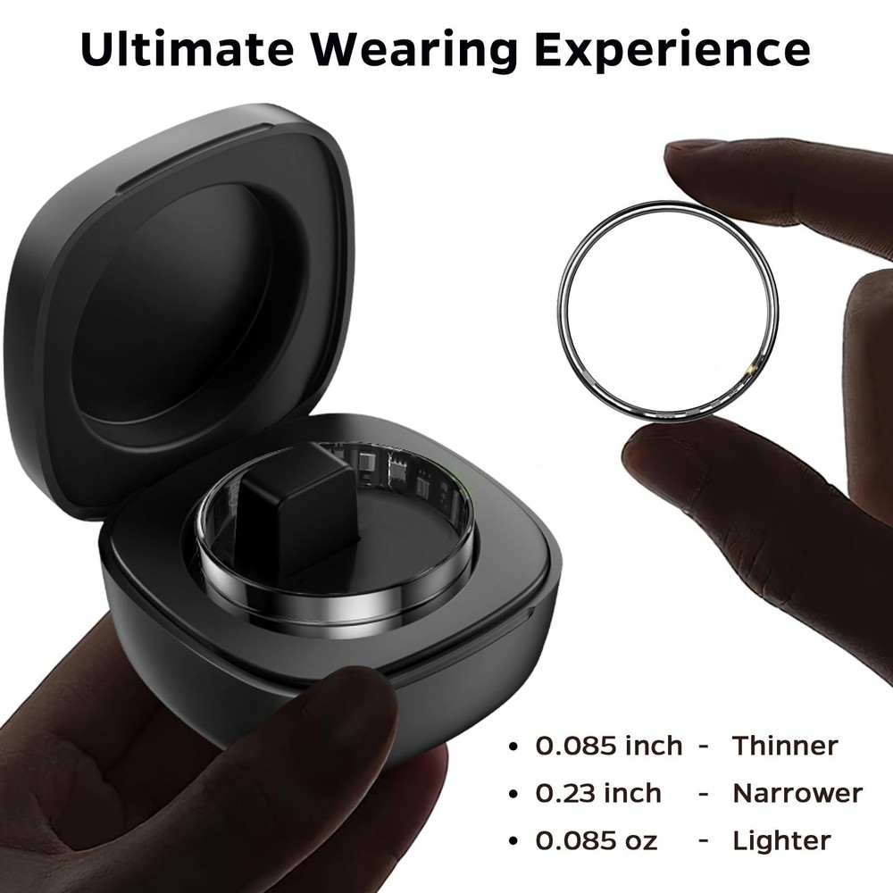 smart ring 【Ultra-thin & Wear More Comfortable】Our smart rings have been upgraded to be thinner, lighter, narrower and more comfortable to wear than other products. The innovative design of the health ring not only reduces the weight, but also optimizes the size, making the ring fit the curve of the finger better and not easy to feel uncomfortable when worn for a long time. Compared with similar products on the market that are more bulky or thick, our smart rings are more ergonomic and provide a more refined and elegant wearing experience 【Intelligent Sleep Tracker】The upgraded sleep tracker has become more intelligent.Not only can this health rings automatically monitor your sleep.Monitor your falling asleep, waking up time, sleep quality (deep sleep and light sleep) through graphs. But also you can view daily, weekly and monthly sleep data in the App, helping you better adjust your habits to improve your sleep quality. Fitness ring is so comfort, you won’t even notice it’s there while it monitors your sleep 【Track Your Health at Your Fingertips】This slim and stylish vital health ring for women & men provides 24-hour heart rate and more health data monitoring. You can conveniently view these real-time health indicators in the APP any time, any where, and You can view daily, weekly and monthly health data in the App. vital health ring for women provides you a more accurate monitoring information to help you explore a healthier lifestyle 【Fitness Tracker & Multiple Sport Modes】The fitness rings automatically track your steps, calories burned and distance throughout the day. This smart ring has multiple sports modes such as walking running, cycling, skipping rope, walking, hiking, yoga, dancing, various aerobic exercises and more. Active these sport modes, you will get workout route, sport time, steps, heart rate, speeds, calories burned and distance from the App, to provide you with more effective exercise guidance 【NO Subscription Fees & Easy to Connect 】After purchasing Our Smart ring, you can enjoy lifetime free access to the health ring application and all functions are without any extra fees.You can easily connect to the smart ring using bluetooth after downloading the application.Enjoy real-time health tracking and easily manage your health through the app