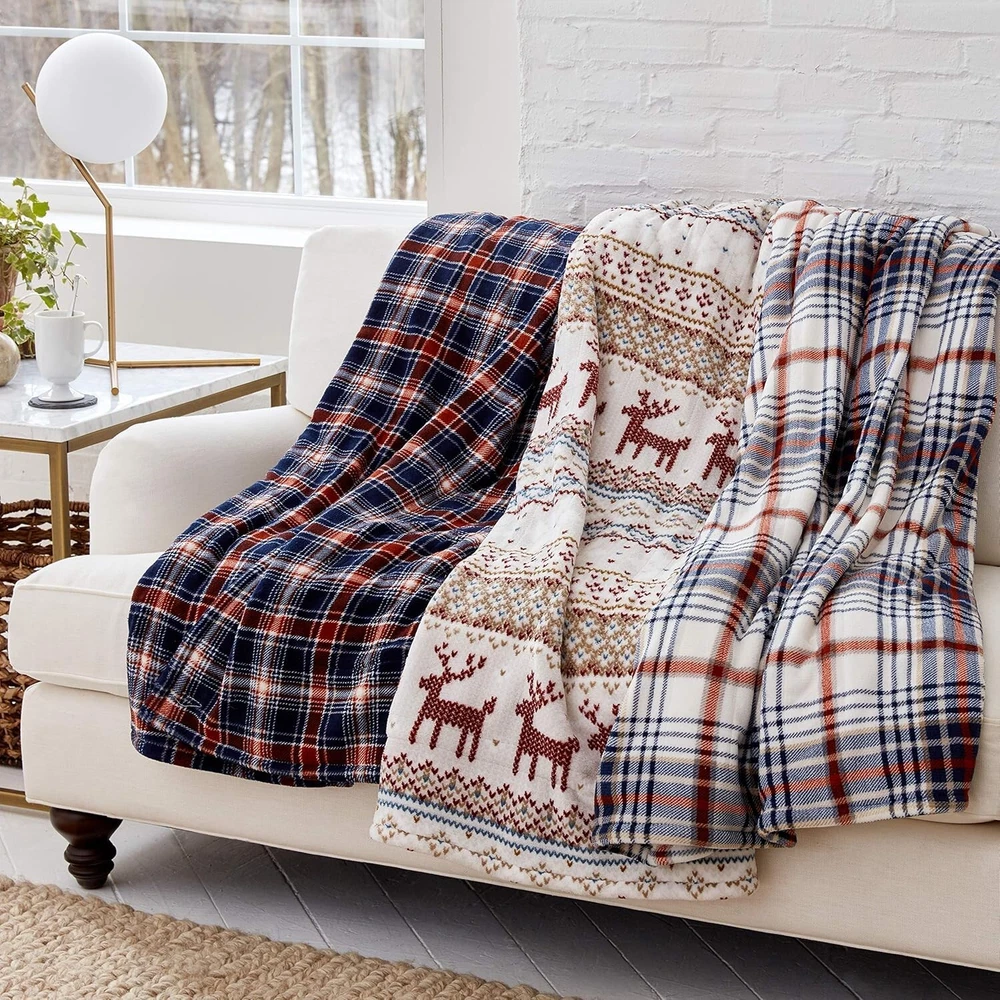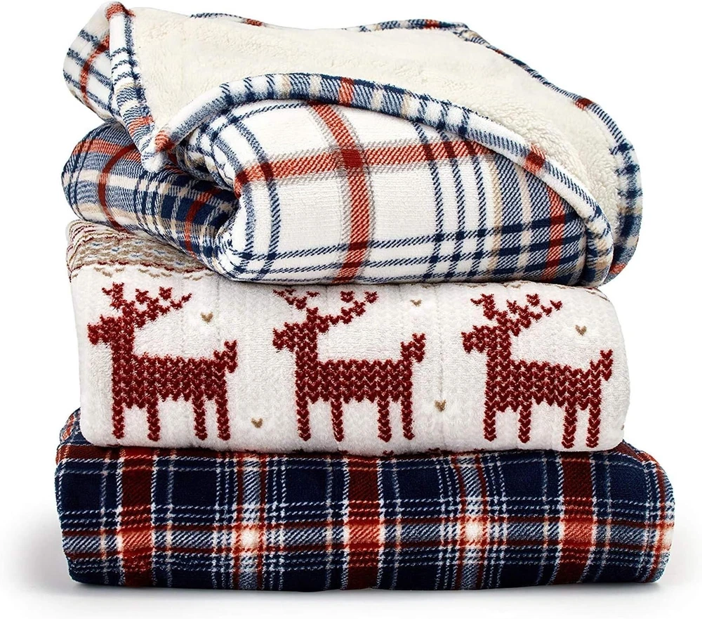 Smart Heated Electric Throw Blanket - Reversible Sherpa - Wi-Fi Enabled - Compatible with Alexa, Google, iOS, Android - Fair Isle Silver Polyester CONVENIENT HANDS-FREE CONTROL: Leave analog behind and stay cozy without having to get up in the cold. Simply use your voice with your smart device or your app to control your wi-fi-only throw blanket. Press the on/off power button until the light turns blue to turn on and control the heat settings with your smart device or . No manual controller. OPERATES ON BAND ONLY INCLUDES: (1) Wi-Fi controlled plush printed electric heated throw MATERIALS: Made from ultra-soft 100% polyester brushed microplush for an incredibly cozy feel FEATURES: This plush reversible sherpa lined throw will keep you warm round. Control your heat settings through the app or via Alexa voice commands. CARE INSTRUCTIONS: Conveniently machine washable. Tumble dry on lowest setting. Remove from drier promptly. Redecorate your living room with the Comfort Plush Heated Throws. You will want to cozy up on the sofa with these comfy colors. Includes a 4-hour automatic shut off for safety and has been ETL tested.