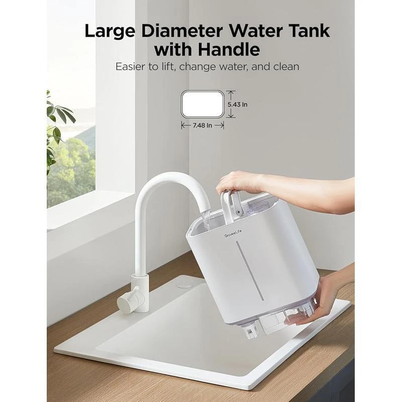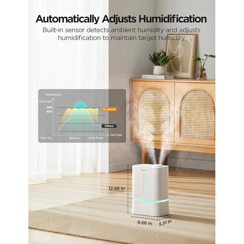 You may also like Simple Design Computer Writing Desk W/ Shelves Durable Compact Easy Assembly New 36.11 USD 38.01 USD Free shipping 5% off Eco-Friendly Computer Desk W/ CPU Shelf Two Drawer Storage Home Office Portable 39.01 USD 41.06 USD Free shipping 5% off Machine Washable Non Slip Kitchen Rugs Set Absorbent Floor Mats Entrance Hallway 74.44 USD 78.36 USD Free shipping 5% off Cordless Angle Grinder 18V Battery Powered Metal Tool Adjustable Handle Green 55.09 USD 57.99 USD Free shipping 5% off 73 Compartment Tool Storage Box Organizer W/ Trays Durable Plastic Structure New 26.27 USD 27.65 USD Free shipping 5% off Luxury Bath Sheet Set 2 Soft Absorbent Cotton Terry Towels Hotel Quality 35x66In 129.15 USD 135.95 USD Free shipping 5% off Wood Jewelry Display Riser Set 5pcs Hexagon Stand Rings Necklaces Earrings New 42.15 USD 44.37 USD Free shipping 5% off 3-In-1 Coat Rack Shoe Bench Organizer 9 Hooks Storage Industrial Easy Assembly 69.44 USD 73.09 USD Free shipping 5% off Pentero 29 Inch Tall Fireclay Pedestal Bathroom Sink Stand Modern Fixture New 75.05 USD 79.0 USD Free shipping 5% off Touchscreen 2-Slice Toaster Quick View Function 30 Sec Control Sleek Design New 51.16 USD 53.85 USD Free shipping 5% off Carbon Steel Non-Stick Stir Fry Pan/Wok Easy Clean Soft Handle Healthy Cooking 27.81 USD 29.27 USD Free shipping 5% off Stainless Steel 2-Slice Toaster LCD Countdown Defrost Reheat Bagel Functions New 67.01 USD 70.54 USD Free shipping 5% off About this item Auto Humidification Control: This bedroom humidifier has a built-in high-precision temperature & humidity sensor, which detects the surrounding temperature and humidity in real time, and automatically adjusts humidification based on set target humidity. Convenient Voice & App Control: Compatible with smart assistants such as Alexa and Google Assistant, this humidifier offers complete the setup with just one sentence, all while freeing your hands. Control remotely with the APP. Large Capacity & Efficient Humidification: The 4. 5L water tank with top-fill design not only provides up to 40 hours of humidification, but also makes cleaning and water refills easier. The 300ml/h max mist output helps reach target humidity faster. 2-in-1 Scent Diffuser & Humidifier: This humidifier features a scent box at the base. Just a few drops of your favorite scent helps to relieve stress and freshen up the home. Multiple Mode Options: Auto mode adjusts humidity based on the set target, while Manual mode follows the set level. Sleep mode promotes restful sleep by shutting off any lights and using science to nudge you to sleep with humidification. Brand GoveeLife Special Feature Night Light, Adjustable Humidity Control, Auto Shut Off, Leakproof, Aroma Diffuser Color White Filter Type Pre Filter Floor Area 370 Feet Capacity 4. 5 Liters Runtime 40 hours Material Acrylonitrile Butadiene Styrene Power Source ac_dc You may also like Simple Design Computer Writing Desk W/ Shelves Durable Compact Easy Assembly New 36.11 USD 38.01 USD Free shipping 5% off Eco-Friendly Computer Desk W/ CPU Shelf Two Drawer Storage Home Office Portable 39.01 USD 41.06 USD Free shipping 5% off Folding Bar Stools Set of 2 Heavy-Duty Indoor Compact Chairs W/ Padded Seats New 47.45 USD 49.95 USD Free shipping 5% off Retro Wooden Toy Chest Storage Bench Safety Hinges Easy Access Organizer Greige 69.48 USD 73.14 USD Free shipping 5% off 90°/180°rotatable Extension Pole Cordless Pole Saw 3.87-6.72 Foot Telescoping US 75.99 USD 79.99 USD Free shipping 5% off Cast Aluminum 10-In Fry Pan Nonstick Dishwasher Oven Safe Kitchen Essential New 27.94 USD 29.41 USD Free shipping 5% off 3 Pcs Black Jewelry Bust Display Stand Necklace Holder Mannequin Organizer New 39.88 USD 41.98 USD Free shipping 5% off Three-Light Indoor Island Pulley Pendant Vintage Industrial Metal Fixture New 164.48 USD 173.14 USD Free shipping 5% off Digital 2-Slice Toaster Touch Display Defrost Bagel High-Lift Easy Eject Kitchen 36.45 USD 38.37 USD Free shipping 5% off Airtight Kitchen Food Storage Containers 8 Pack Easy Lock Lids Organization Set 32.29 USD 33.99 USD Free shipping 5% off Solar LED Path Lights 20 Lumen Outdoor Landscape Lighting Eco-Friendly 2-Pack US 24.85 USD 26.16 USD Free shipping 5% off Ice Maker Assembly Kit IM116000 Refrigerators Appliance Repair Genuine Parts New 87.23 USD 91.82 USD Free shipping 5% off