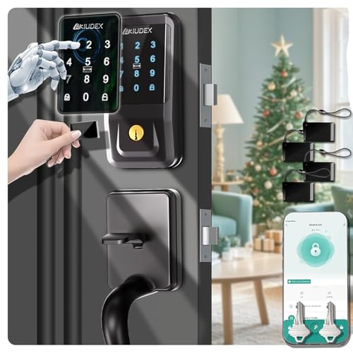 Item Length: 14.6 Control Method: App Item Weight: 5.17 pounds Included Components: 2xKeys & 4x IC Fobs Card, Screw Package,, User Manual,APP Manual, Manufacturer: Does Not Apply Finish: Painted or Powder Coated Style: Black Handle Set Shape: Rectangular or Cylindrical Special Feature: 4xIC Card,Anti-Peeping Password, Bluetooth APP Control,One-Touch gtin13: Does Not Apply Color: Black Country of Origin: China Item Width: 9 Batteries Included: No Item dimensions L x W x H: 14.6 x 9 x 3.7 inches Brand: Does Not Apply Product Dimensions: 14.6 x 9 x 3.7 inches Controller Type: Amazon Alexa Finish Type: Painted or Powder Coated Item model number: Black UPC: 743054590676 Special Features: 4xIC Card,Anti-Peeping Password, Bluetooth APP Control,One-Touch Recommended Uses For Product: Residential and commercial settings (apartments, rental propertie Connectivity Protocol: Wi-Fi Type: Does Not Apply Date First Available: May 24, 2024 EAN: Does Not Apply Model Name: Smart Front Door Lock Set Lock Type: Smart Handlesets, Combination Lock, APP Lock, Keypad, IC Fobs unl Item Height: 3.7 MPN: Does Not Apply Batteries Required: Yes Material: Stainless Steel, Alloy Steel, Metal, Copper, Polyethylene (PE)