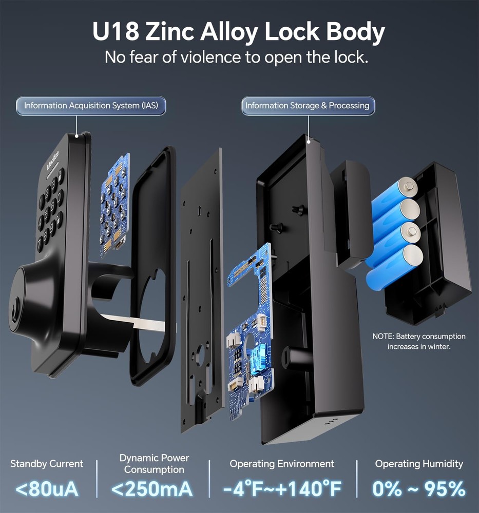 This keyless entry deadbolt is a game-changer! Super easy to install, and I love the multiple access options—keypad, backup keys, and one-time codes. The auto-lock feature gives peace of mind, and the matte black finish looks sleek. No more fumbling for keys—just quick, secure entry. Perfect for families or frequent guests with 100 user codes. Highly recommend!