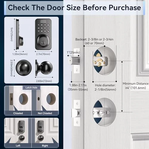 Manufacturer: Does Not Apply MPN: Does Not Apply Batteries Included: No Special Features: Easy to Install Model Name: U18R-B Type: Does Not Apply Number of Pieces: 1 UPC: 768510774391 Item Length: 2.6 Item Height: 4.78 Controller Type: Hand Control, Mechanical knob Shape: Round Control Method: Touch Style: Knob Special Feature: Easy to Install Finish: Painted gtin13: Does Not Apply Item dimensions L x W x H: 2.6 x 0.39 x 4.78 inches Finish Type: Painted Item model number: U18R-B Brand: Does Not Apply Material: Zinc Country of Origin: China Recommended Uses For Product: Homes, Airbnb, Apartments, Offices, Hotels Lock Type: Keypad Item Weight: 1.5 Kilograms Product Dimensions: 2.6 x 0.39 x 4.78 inches Part Number: U18 EAN: Does Not Apply Batteries Required: No Item Width: 0.39 Included Components: Deadbolt Front Lock X1 Deadbolt Rear Lock X1Door Knob Front X1Doo Date First Available: January 18, 2024 Color: Black Connectivity Protocol: Airbnb