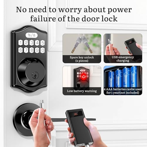 Smart Keyless Entry Deadbolt with Handle Set - Front Door Lock