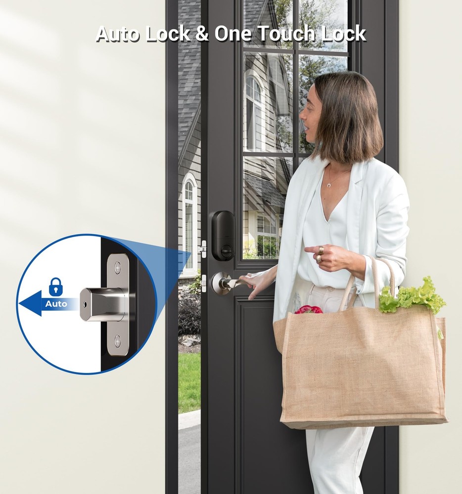 The Deadbolts are coming with user-friendly accessibility, easy installation, powerful security and convenience. Upgrade your deadbolt in hand, makes you feel more effortless to enter your house. User-friendly Keyless Entry With a secure 4 to 10 digit codes, it is easy for the elderly and kids to remember. You can also assign a one time code to a temporary visitor when you are away from home, save a lot of hassle. Auto Lock Enable the auto lock function, you can set your auto lock time to 10 ~ 99 seconds as per your needs. No need to wonder if the door is locked when you go out. Anti Peeping Password Prevent your codes from being spied by others, with this secure and reliable smart anti-peeping keypad, you can enter random digits before or after the correct access codes. Don't worry about leaking your personal information to a third party, the access codes are stored in local only. Vacation Mode When you are on a business trip or on vacation, you can turn on the vacation mode feature, which can limit all access grants, including the physical key, the only way to access your electronic deadbolt is your master codes. Specifications Door Lock Thickness: 1-3/8" to 2" (35 mm - 50 mm) Backseat: 2-3/8"or 2-3/4" (60 mm or 70 mm) Door Hole Diameter: 2-1/8" (54 mm) Latch Hole Diameter: 1" (25 mm) Weather Resistant: -22°F to 158°F/ -30°C to 70°C Keyless Entry: With 20 password code + 2 spare keys + one-time password for temporary visitors, the one-time code will automatically deleted after use Smart and Convenient: With anti peeping function when entering passwords, and the front door lock set can 'auto lock' in 10-99 seconds, or press a key for 2 seconds to lock the door manually Security Keypad Deadbolt: The ANSI Grade 3 smart door lock was made with sturdy lock cylinder and alloy, powered by 4 AA batteries, work last for more than 1 year Electronic Door Lock: Has backlit keypad and low battery alert, mute mode and vacation mode, water resistant, go perfectly with both traditional and modern house Easy to Install: Just with a screwdriver, the door lock will be easily installed and program all by yourself in several minutes, compatible with all American standard left and right handed doors offers at least 1 year product customer support from the date of purchase, 24/7 email support for you