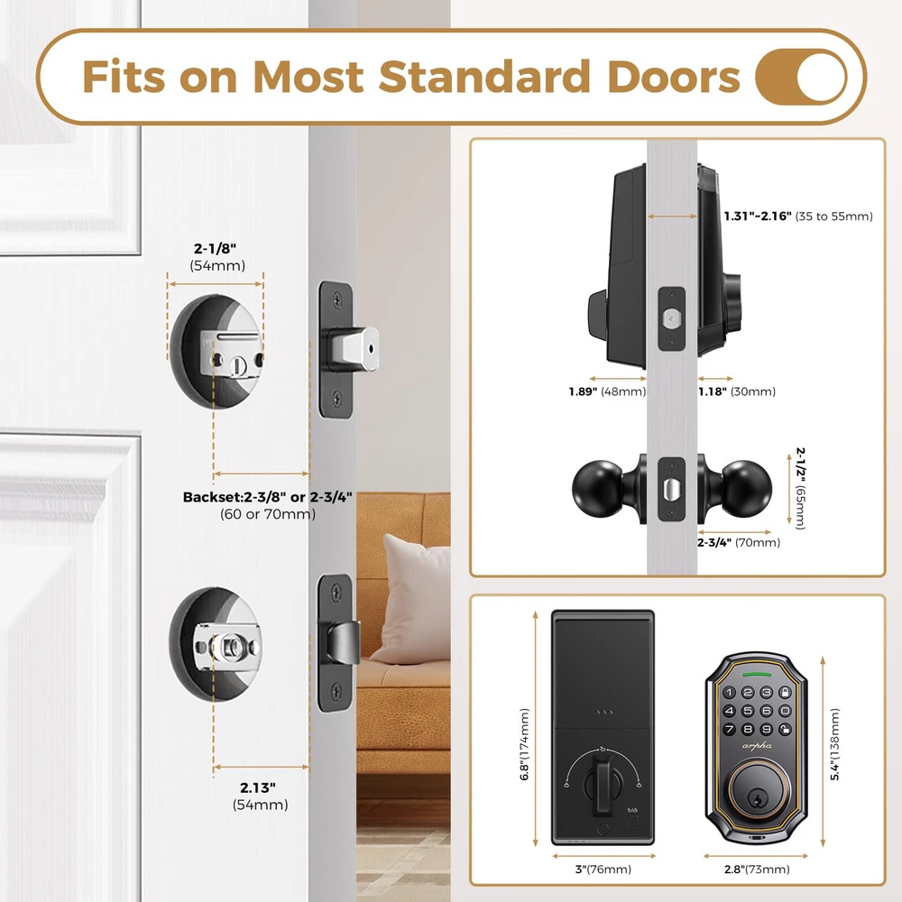 Smart Keyless Entry Door Lock with 2 Knobs - App & Keypad Control
