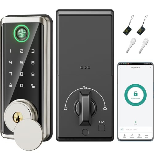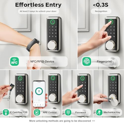 Return Policy Fast Delivery Trusted seller Keyless Entry Door Lock, Smart Auto Locks for Front Door & Key Fobs & Remote Control, Keypad Deadbolt Digital, Fingerprint Door Lock with Code, Cerraduras Inteligentes, IP68, Satin Nickel Product Description 【Effortless Keyless Entry】The keyless entry door lock has multiple unlocking methods to get into your home, including fingerprint, password, IC card, NFC devices, Smart APP, and mechanical lock to ensure convenient entry. You will not be locked out or need to spend time searching pockets and bags. 【Smart Management】You can add & delete users, generate passwords for others, and view the unlocking records; Multiple smart devices can be controlled by one APP. A Tuya GATEWAY (SOLD SEPERATELY) IS REQUIRED FOR REMOTE CONTROL and checking real-time unlocking records 【Enhanced Security】The waterproof IP68 smart door lock has undergone rigorous extreme temperature testing and can withstand a usage environment of -4 to 122 ℉. The fingerprint door lock uses customized high-tech chips with accurate biometric recognition technology (please cover the entire fingerprint as much as possible when registering). Equipped with a curved screen with anti-peeping keypad, the keypad deadbolt has auto-locking, one-touch locking, and anti-theft alarm functions. 【Responsive & Accurate Recognition】The front door lock with code uses customized high-tech chips, which is responsive to password and fingerprint verification. Built-in mature biometric technology - fingerprint recognition, the electronic door lock can accurately identify the user at the moment of pressing down the finger (less than 0.3S) after every edge of the fingerprint is fully recorded. 【Full Control with One APP】Using Tuya APP or Smart Life APP not only allows remote unlocking for visitors, or generate one-time, time sensitive, or permanent passwords sharing them with your visitors, but also enables remote viewing records of door lock unlocking and anti-theft alarms anytime & anyw. Additionally, some functions of the dead bolt locks for exterior doors can be set by the Apps (such as adjusting the Extend Unlock(for auto-lock) and volume of automatic door locking). 【Fit to All Doors】The smart deadbolt lock is compatible with both left and right handed doors. Automatically identify the unlocking direction after installation. Ideal for houses, Airbnb, apartments, offices, and hotels. 【Quick Installation】No extra drilling needed. Just one Phillips screwdriver you can finish the installation the combination door lock within a few minutes. Please refer to the user manual and the QR codes for detailed installation instructions. Includes all accessories(cylinder*1, mechanical keys*2, IC card*2, screw kit*1, user manual*1, installation template*1). Shipping Returns Payment Shipping Shipping is FREE to all addresses other than APO/PO boxes in the lower 48 states. All our stock ships from US-based warehouses. Shipped via USPS or UPS (depending on location and package weight) Unless stated otherwise, all orders will ship within 24-72 hours of your payment being processed. Check our feedback to see the great reviews of FAST shipping we offer. Returns Seller does not accept returns Payment We currently accept payment via eBay managed payments only. Once payment is cleared, we will dispatch your shipment within 1-3 business days. Please refer to the "Shipping" tab for more information regarding shipping speed to your destination.