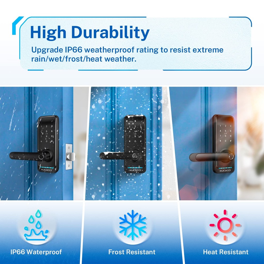 đ„ăKeyless Entry Door LockăMultiple unlock ways: Fingerprint + Keypad Passcode + Key Fob Card + Physical Keys + Smartphone App. Connected wifi gateway(sold separately), you also can remotely unlock the digital door lock and enable the Alexa to voice unlock. đ„ăEasy InstallationăNo extra drilling required or a costly locksmith. With a screwdriver, you will be able to install and program this smart door lock all by yourself. đ„ăIP66 Security Smart Lockădoor locks with keypad is a secure housekeeper. It comes with sturdy lock cylinder, high-quality persistent durable zinc alumium structure, anti peeping keypad code protection and IP66 weatherproof rating to resist extreme weather. It can be used indoors or outdoors, left or right opening door. đ„ăIdeal for Rental Hosts & HomeownersăWith TTlock app or TTlock web manager, you can manage all smart door locks in one place: authorize admin, generate code, share ekey, view records. Simple, Fast and Efficient, absolutely best choice for Airbnb short-term rental hosts and self-housing resident. đ„ăSatisfaction Guaranteeăsmart lock comes with 1 year product warranty, 30-day money-back guarantee and lifetime customer support from the date of purchase. Customer recognition is our top priority!