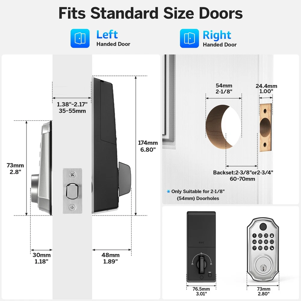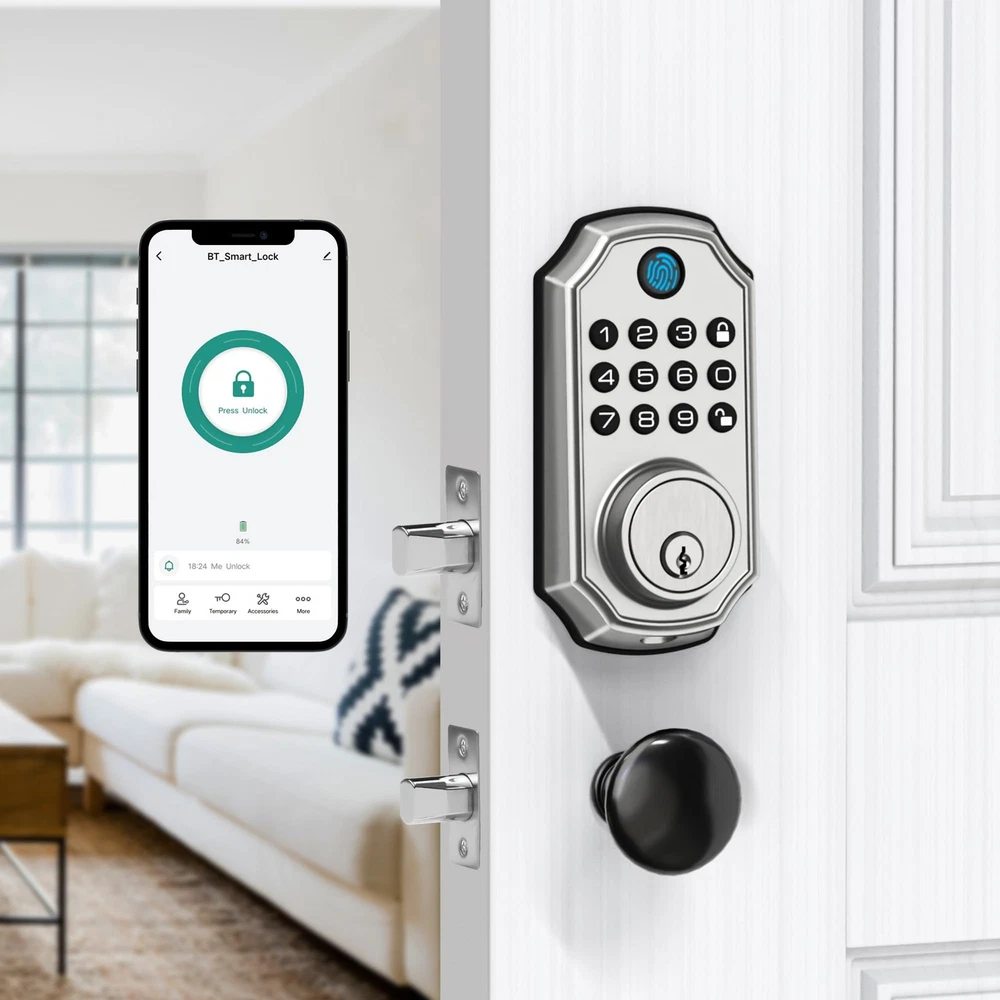 door locks for front door bedroom door lock door lock with code locks with keys deadbolt entry door locksets with deadbolt door keypad locks cerradura inteligente para puerta principal deadbolts chapas para puertas exteriores cerradura inteligente smart locks door locks for front door safety keyless door lock digital locks for doors code door lock electric door locks for front door keyless entry door lock deadbolt wifi deadbolt smart locks electric door lock keypad door lock with deadbolt digital lock wifi door lock deadbolt deadbolt keypad lock door lock with key front door keyless entry door lock dead bolt keypad lock for front door keypad deadbolt lock electronic deadbolt door lock cerraduras para puertas exteriores door locks with keypad smart door locks key pad dead bolt locks smart keyless entry door lock electronic door locks for front door digital deadbolt lock keyless door locks for front door code door lock for front door front door smart lock electronic locks for exterior door coded door lock for exterior door llavin inteligente puerta principal door lock keypad door code lock key pad lock front door electric deadbolt lock smart front door lock set front door locks keyless door locks digital door locks for front door dead bolt keypad door lock digital lock for front door door lock with keypad keyless deadbolt locks for exterior doors keyless entry deadbolt digital deadbolt deadbolt keypad code deadbolt lock key pad lock electric door locks 【5 in 1 Smart Door Lock】 deadbolt lock can be unlocked by APP + Fingerprint + Keypad Code + Ekey + Mechanical Key, which can support 50 users to use the door lock at the same time. The door lock set includes 1 lock-body, 2 mechanical keys, 1 installation guide, and all materials needed for installation 【App Intelligent Control】Download Tuya APP to connect the deadbolt smart lock through Google or Apple store, complete the settings on your phone, you can remotely generate one-time, permanent, scheduled and recurring codes to share with your guests, view access data in real time, and ensure the security of the home 【Remote Control Keypad Deadbolt】With the Gateway (sold separately), the smart door locks for front door can be opened and closed remotely and connected with Alexa or Google Assistant, which makes your whole-house smart. The perfect solution for apartment, rental property management and owner-occupants 【Biometric Door Lock】Your finger is the key! This finger print lock for door has AI self-learning function, biometric fingerprint recognition rate up to 99.99%. The electronic door lock can recognize your fingerprint in as little as 0.3S and unlock your door in 1S. Say goodbye to keys 【Auto Lock & One-Touch Lock】Do not worry about forgetting to lock the door, the digital door lock can be set to lock automatically. The one-touch switch button helps you control the keypad door lock easily, no need to tediously enter the password when receiving guests, you can unlock the door with one key 【Upgraded Zinc Alloy Material】The electronic deadbolt is made of zinc alloy with baked enamel finish, IP65 rated water and rust resistant, protects your front door from the elements. Powered by 4 AA , no need to replace them frequently, lasts 8 to 12 months. Warns you when the AA is about to run out 【Quick Install & Program】This keyless door entry lock is easy to install. Equipped with manual and installation video guide, it only takes 10 minutes to install and program. If you encounter problems, please contact service team, we will reply within 24 hours