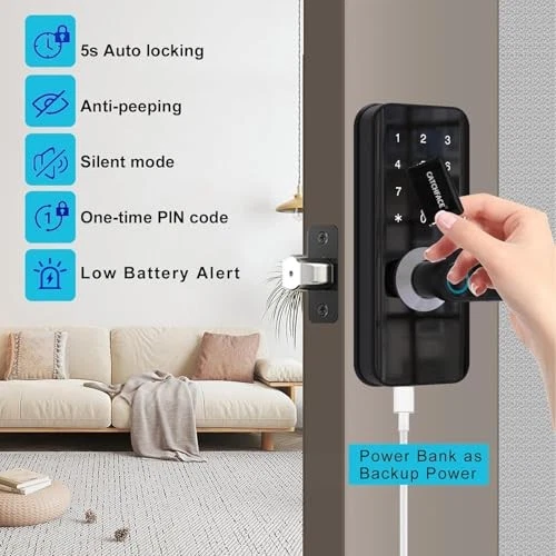 Menu 1. We require immediate payment. 2. We currently accept payment via eBay managed payments only. 3. Once payment is cleared, we will dispatch your shipment within 1-3 business days. Please refer to the "Shipping" tab for more information regarding shipping speed to your destination. Door Lock with Keypad, Keyless Entry Door Locks for Front Door, Bedroom, Fingerprint Smart Lock Deadbolt, APP Control, Easy Installation Product description 5 Ways to Unlock, Convenient & Secure: Fingerprint+ App +Passcode+Fob keycard+Mechanical Key. No more fumbling for keys! Fingerprint recognition is fast and accurate, while the keypad provides a reliable backup. Traditional key and card access offer added convenience for guests or emergencies. This smart lock can be installed securely in minutes—simply drill one small hole for added stability and use a screwdriver to finish the setup effortlessly. Using 4 AA batteries(not included), the battery life is up to 1 year. Low battery alerts remind you to replace them in time, ensuring uninterrupted security. Ideal for Homeowners & Rental Hosts: offering keyless entry, remote access, and temporary passcodes. Easily manage property access from anyw—no physical keys needed. Ideal for short-term rentals or multi-unit properties, they combine security and convenience for hassle-free living. Upgrade today! Effortless Access Control via App: Manage access seamlessly with our user-friendly app. Assign permanent or temporary access to family, create one-time codes for guests, and monitor unlock logs—all from your smartphone. Stay connected and in control, anytime, anyw. Sleek Design, Fits Any Home: This smart lock features a modern, minimalist design that complements any door style. Its compact size and stylish finish add a touch of sophistication to your home’s entrance. Notes: 1. Please scan the QR code put in the box to connect to the lock. (Each lock has a unique ID, and the QR code is included inside the packaging.) 2. When linking the smart lock with the APP, press the S button to confirm (the S button can be found after removing the battery cover). 3. If you lose or change your phone, please do not worry, refer to the instruction manual to use the S button to restore the lock to its factory default PLEASE MESSAGE US IF YOU HAVE ANY OTHER QUESTIONS, AND MANY THANKS FOR READING ALL OF THIS. Copyright ©#. All Rights Reserved.