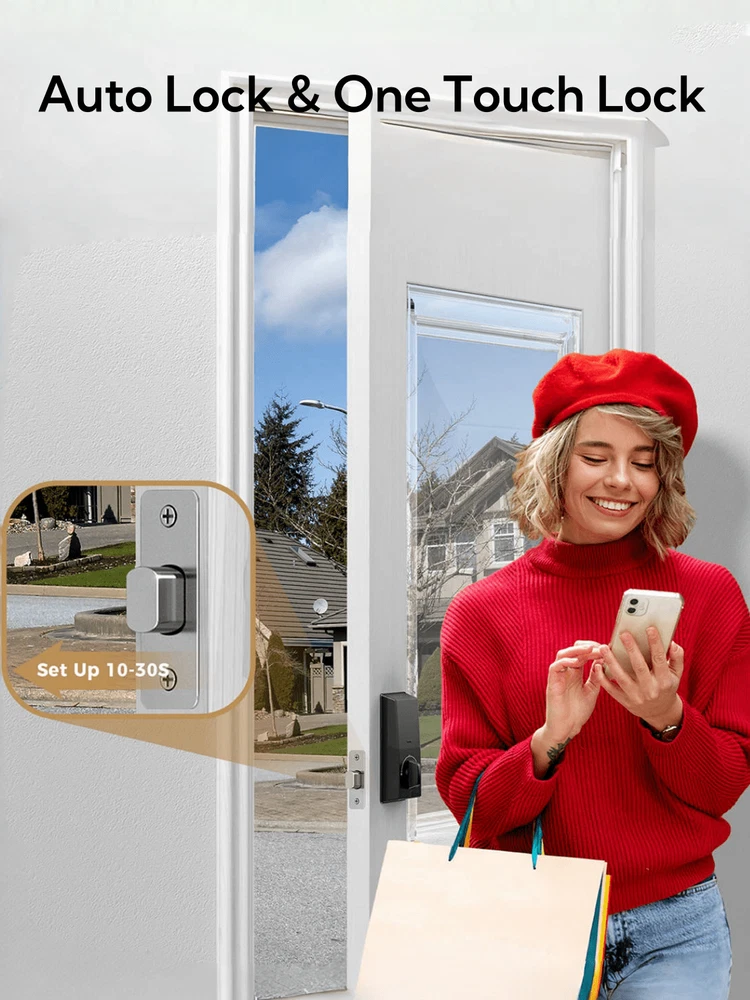 Up to 100 Entry Codes: Arpha smart door lock stores up to 100 different entry codes so everyone in the household can use it, as well as anyone you trust enough to give open access to. For temporary guest access, it can assign a unique code that works only for specific dates. 100 Passcode: Door lock with code supports 100 groups of access codes for the front door, including 97 users and 3 admin passcodes. Anti-Peeping Password: The door lock provides virtual password unlocking function. For example, the user sets the password to "123456". When user opens the front door, the keyless entry door lock allows the user to enter 5 random numbers at the beginning or ending to avoid surveillance by strangers. "XX123456XX" allows the user to enter. Long Battery Life Battery Alert: If you buy this lock, though, don't forget to snag some batteries. The keyless door lock supports 4 AA batteries (batteries not included) and can be used for about 180 days without frequent battery replacement. It does warn you when the battery is running low, so there's a fail-safe method in case you do find yourself locked out because of a dead battery. There's a USB-C port hidden on the bottom of the exterior you can use to quickly charge it up enough to unlock the door. Auto Lock: The door lock also comes with a 'Smart door locking' feature that automatically locks the door after 10 seconds to 30 minutes. Extremely convenient for those with busy lives-simply close your door and it will auto-lock behind you. Durability & IP54 Waterproof: Arpha AL301 door lock set is made of zinc alloy, which is stronger and more durable than aluminum alloy. The IP54 waterproof design makes it rainproof and can withstand temperatures from -31 °F to 158 °F.