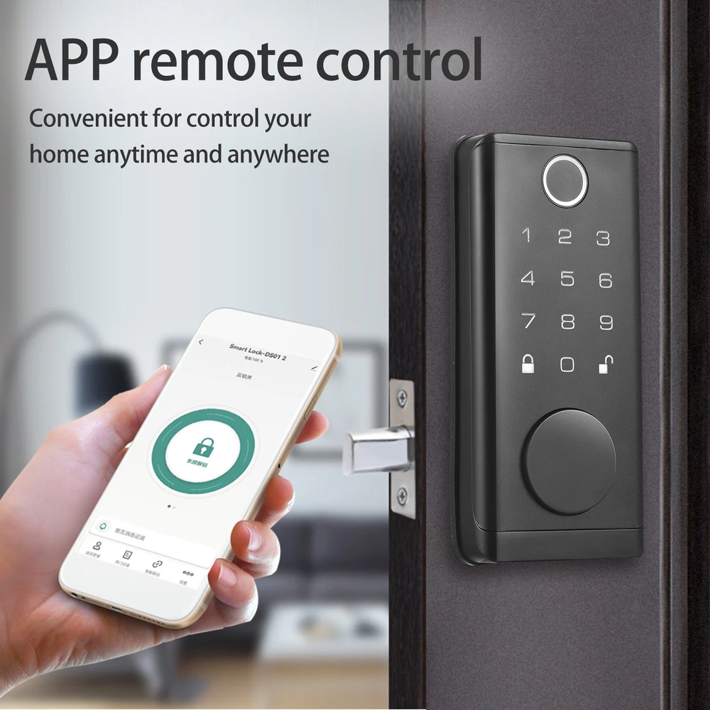 Suitable For: Front Door Charging method: 4*AA battery(not include) False recognition rate: ≤0.001% Package Size: 39 * 26.3 * 9cm / 15.3 * 10.3 * 3.5in 5in1: fingerprint, smartphone APP, digital code, IC card and keys gtin13: Does not Apply MPN: Does not Apply Features: Keyless, Electronic, With Key, Easy to Install, built-in Wi-Fi, APP remote control, Waterproof, low battery alarm, Auto Lock UPC: Does not Apply Support: Support Temporary, Multi-person and Multi-scenario Use Fingerprint storage: 100 sets Package Weight: 2.06kg / 4.5lbs Fingerprint recognition: ≤0.5s Code storage: 150 sets Material: ABS + zinc alloy Type: Fingerprint Lock Types: Electronic Keyless Entry Door Lock Deadbolt Lockset True rejection rate: ≤0.01% Product color: Black Suitable for door thickness: from 1-3/8 inch (35 mm) to 1-31/32 inch (50 mm) Waterproof: IP67 5 Unlock method: fingerprint, smartphone APP, digital code, IC card and keys Brand: Unbranded/Generic ASIN: B0DTJ7WTS1 for: Home Anti-theft Security used for: home entry door, hotel, office.etc