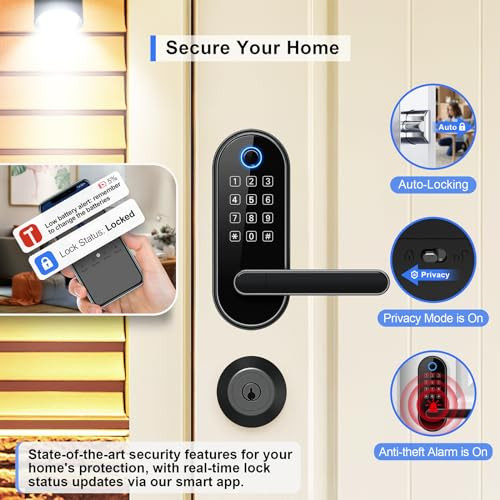 Return Policy Fast Delivery Trusted seller Keyless-Entry Keypad Fingerprint Smart Lock: Digital Door Lock with Code Passcode, Electronic Door Handle, Biometric Door Knob for Entry Door, Bedroom Door (Black) Product Description [Fingerprint Unlock - Family Friendly] Unlocking with a fingerprint takes just 0.3 seconds, offering quick access for family members; our 508 DPI high-resolution fingerprint sensor ensures up to 99.99% recognition rate; track all unlocking history using the smart app. [Code Unlock - Guest Friendly] Remotely create instant or scheduled door codes for family, visitors, and guests using the smart app, even when you are not at the property; ideal for homeowners, rental hosts, and property managers. [Secure Your Home] Automatic door locking to ensure your door is always locked after you leave; an alarm will trigger if unwanted intruders try to enter; privacy mode disables all access methods from outside when you need it; stay informed about your door's activity with all security alerts pushed to your smart app. [One Card, All Locks] Use one card to unlock all doors, eliminating the need to carry multiple keys and the confusion of which key is for which door; this feature is especially friendly for property managers who manage many properties. [Voice Control] Works with Alexa and Google Assistant for hands-free control through voice commands like "lock the front door”, "unlock the front door”, "check lock status”, etc. (Gateway Required, Sold Separately) [Locks Management] Manage all the locks via the smart app and web portal; log in web portal with your app credentials. [Easy Installation] Easy to install with just a screwdriver in 20 mins; no extra drilling needed; no hardwiring; door handle is reversible for both right-handed and left-handed doors. Shipping Returns Payment Shipping Shipping is FREE to all addresses other than APO/PO boxes in the lower 48 states. All our stock ships from US-based warehouses. Shipped via USPS or UPS (depending on location and package weight) Unless stated otherwise, all orders will ship within 24-72 hours of your payment being processed. Check our feedback to see the great reviews of FAST shipping we offer. Returns Seller does not accept returns Payment We currently accept payment via eBay managed payments only. Once payment is cleared, we will dispatch your shipment within 1-3 business days. Please refer to the "Shipping" tab for more information regarding shipping speed to your destination.
