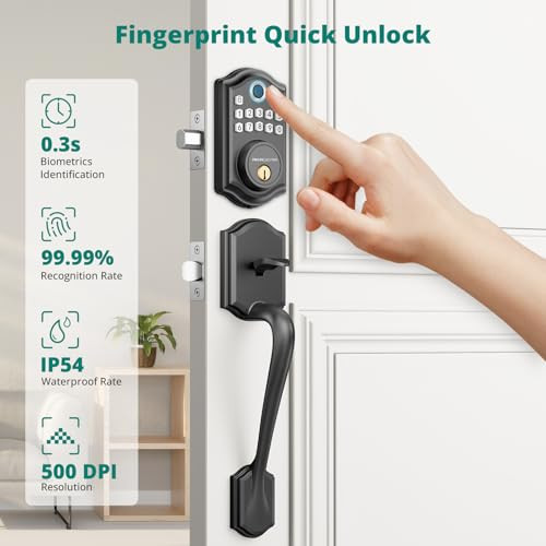 Menu 1. We require immediate payment. 2. We currently accept payment via eBay managed payments only. 3. Once payment is cleared, we will dispatch your shipment within 1-3 business days. Please refer to the "Shipping" tab for more information regarding shipping speed to your destination. Keyless Entry Door Lock with Handle Set- Fingerprint Door Lock, Electronic Keypad Deadbolt, Smart Lock for Front Door, Auto-Lock & One Touch Locking, Easy Installation - Matte Black Product description Multiple Unlocking Options: This keyless entry door lock solves the problem of being unable to open the door due to forgetting keys. You can use your fingerprints, electronic passwords, or backup keys to unlock, which is very convenient. Secure Fingerprint Unlock: The biometric fingerprint identification technology enhances security and allows users to unlock the door in one second without keys or cumbersome passwords. The smart door lock can store up to 50 user fingerprints, recognizing your fingerprint in just 0.3 seconds for effortless unlocking within 1 second. User-Friendly of Keyless Entry: 's DS10 fingerprint smart door lock handle set offers unparalleled convenience and security features. With up to 50 user fingerprints and 300 access codes, create temporary codes for guests. Additionally, it comes equipped with two spare keys for family members, further enhancing accessibility and peace of mind. Convenience and Security: Easily lock the door with a button without a key, streamlining the locking process. Set the automatic locking to activate within 5-59 seconds, ensuring property security even if manual locking is overlooked. Long Battery Life & Backup Power: With low power consumption, 4 AA batteries can operate for a year or up to 7,000 cycles, eliminating the need for frequent battery changes and saving time. The door lock features a low-battery alert. If the lock runs out of power, simply recharge it with backup power. Note: 4 AA batteries are not included. Voice Guidance: The DS10 smart door lock handle set enhances traditional operation guides with the addition of voice guidance functionality. This innovative feature provides clear instructions to help users unlock or adjust settings accurately. By offering this capability, users can swiftly and precisely set up and operate the door lock, improving their overall user experience. Additionally, if the user finds the voice prompts too loud, they can easily disable this feature according to their preferences. Easy to Install: With just a screwdriver, set up your lock in a few minutes for all US standard left and right-handed doors. No need to select the correct version; automatic recognition s seamless operation without manual adjustments. PLEASE MESSAGE US IF YOU HAVE ANY OTHER QUESTIONS, AND MANY THANKS FOR READING ALL OF THIS. Copyright ©#. All Rights Reserved.