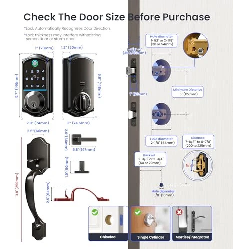 Return Policy Fast Delivery Trusted seller Fingerprint Smart Front Door Lock Set, App Control, Keyless Entry Door Lock with Handle, Smart Deadbolt, Emergency Power Port, Digital Touchscreen Keypad, Auto Locking, Easy Install, Matte Black Product Description Keyless Entry Door Lock with Handle Set: automatic door lock combines timeless style with modern convenience; Its sleek, retro design and durable handle make it a perfect match for any front door, adding elegance and security to your home Five Unlock and Lock Options: Whether it’s app control, fingerprint, password, fobs, or traditional keys, the smart lock lets you unlock and lock your door the way you want, giving you flexibility, keeping your home protected even when you're in a hurry KK Home App Control: Remotely manage access, generate temporary codes, and share keys with trusted users; Ideal for homeowners, vacation rental hosts, and property managers; Supports voice announcements in English, Spanish, and French Absolute Security Assurance: Keep your home secure with AES-128 encryption for biometric data protection; With an IP55 rating, the Keyless entry door lock withstands extreme weather, An emergency charging port ensures you’re never left without access Easy Installation: Skip the hassle of hiring a locksmith—install your new smart door lock yourself in 15 minutes; Fits 99% of doors, both left and right-handed (check your door dimensions for a perfect fit) Seamless Smart Home Integration: Pair the front door lock set with our G1 gateway (sold separately) for full smart home control; Enjoy voice commands, remote unlocking, and activity logs—tailored for modern living Reliable US-Based Support & : With a 1-year warranty and online support, we’ve got you covered; Our customer service team is available Monday-Friday (9 AM–5 PM PST) and 24/7 email support for after-sales assistance Shipping Returns Payment Shipping Shipping is FREE to all addresses other than APO/PO boxes in the lower 48 states. All our stock ships from US-based warehouses. Shipped via USPS or UPS (depending on location and package weight) Unless stated otherwise, all orders will ship within 24-72 hours of your payment being processed. Check our feedback to see the great reviews of FAST shipping we offer. Returns Seller does not accept returns Payment We currently accept payment via eBay managed payments only. Once payment is cleared, we will dispatch your shipment within 1-3 business days. Please refer to the "Shipping" tab for more information regarding shipping speed to your destination.