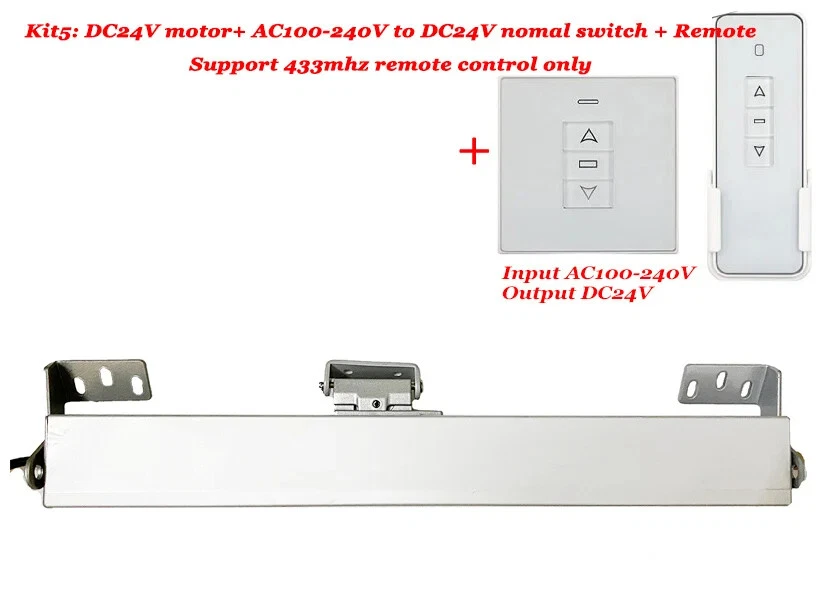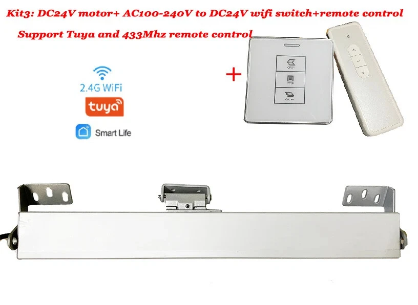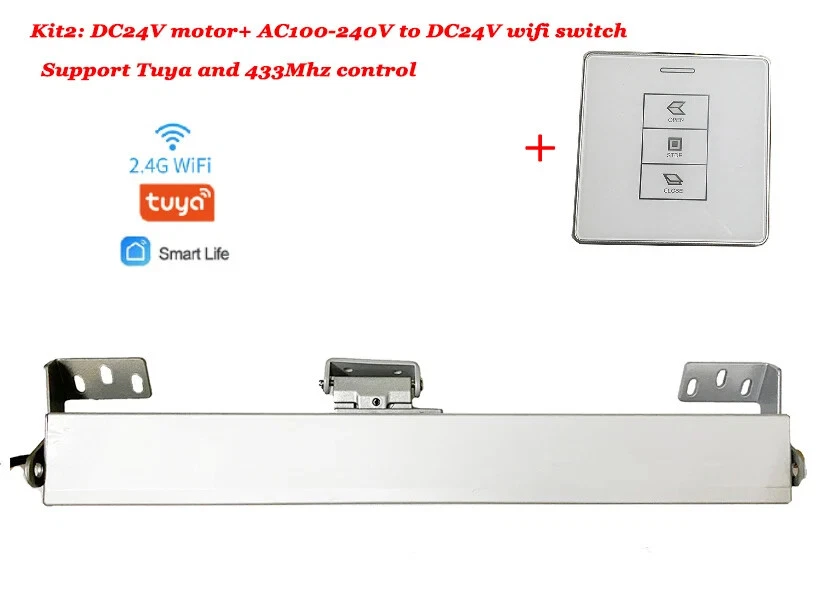 Read before placing an order Note: Batterries of remote control are removed. Note: Customs fee is beyond price. Note: Some kits are sent in 2 small packages due to shipping weight limitation Kit1: DC24V motor only, Suitable to use with Ac to DC24V transformer. Motor itself doesn't support Wifi control or work alone Kit2: DC24V motor + AC100-240V to DC24V smart wifi switch (support wifi Tuya, no hub needed), support use with wired or wirelessrain/wind sensor in our store. Kit3: DC24V motor + AC100-240V to DC24V smart wifi switch+1pcs remote control, support wifi Tuya, no hub needed,support connect to wired or wirelessrain/wind sensor in our store. Kit4: DC24V motor + AC100-240V to DC24V Normal switch,No wifi support 433Mhz control, use with wired or wirelessrain/wind sensor in our store. Kit5: DC24V motor + AC100-240V to DC24V Normal switch+ 1pcs 433Mhz remote control,No wifi, support 433Mhz control,support connect to wired or wirelessrain/wind sensor in our store. Kit6: black DC24V motor + AC100-240V to DC24V smart wifi switch+1pcs remote.,support wifi Tuya, no hub needed,support connect to wired or wirelessrain/wind sensor in our store. Window opener parameters Here the opener is with 300mm Travel length. For opener with 400/500/600/700mm stretch length , contact seller or search in our store. For AC version motor, you can also search in our store or contact seller. 1. The chain stretches out while open window and retract to opener inside after closing window. Doesn't all to open/close manually no matter power on or power off. Will stop when encouter a strong obstacle. 2. Double layer chain, more durable and not easy to break off. 3. Equipped with overload protector and can open and close for 20000times. 4. Locking force reach 2000N. Push/Pull force 400/400N. 5. Working temperature: 20-75oC 6. Suit for multiple window types 7. Working speed 9mm/s For normal AC to DC transformer in some kits Switch doesn't suport wifi. SUpport manual button and 433mhz remote. 1pcs switch can handle 1pcs motor. Support use with rain/wind sensor in our store For Smart wifi AC to DC transformer in some kits Switch suport wifi tuya smart life app, support alexa. Support 433mhz remote. 1pcs switch can handle 2pcs motor at the same time. Support use with rain/wind sensor in our store How to install For AC100-240V motor, please click image below to order For AC100-240V motor with adjustable travel length, please click iamge below For switch that support control 2 pcs motor individually, please click image below to order For weather sensor or wireless rain sensor, please click image below to order For window chain with different chain length 30/40/50/60/70cm, click image below to order please.