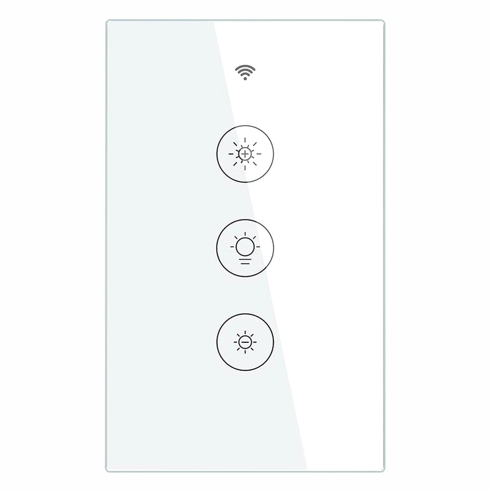 1.2/3-way multi-control association to control 1 light with multiple dimmer switches; anti-scratch tempered glass panel suits any home decor and allows for effortless touch control; you can multi-control associate this switch to multiple different switches in Smart Life App. 2.Non-interference control mode; allows the switch to be controlled via Smart Life, touch control, voice, and remote with RF433 frequency and 1527 encoding remote switch(not included); each control method works independently; achieve multi-control by associating to other smart switches 3.Compatible with Alexa and Google Home for hands-free voice control with 0%-100% dimmable; can also be controlled via Smart Life/Tuya app anytime, anywhere; setting relay status and remembers last relay status optional when powered off , backlight switch On/Off. 4.Take full control of connected appliances with timers, schedules and countdown (1/5/30 mins, 1 hour, etc.) with the app; share control with family and friends for added convenience Product Description Product Specifications: Working voltage:100-250V AC, 50Hz/60Hz Max. total current: 2A(US) Max. Load Power: US:440W(220V)/220W(110V) Wireless type:WIFI2.4G+RF433MHz Working temperature:-10℃~45℃ Support system:Android/iOS MOES Wi-Fi Smart Dimmer Light Switch Easily set the ambiance of any room and control your lights from anywhere with Moes Dimmer Switch.,it can easy replace the traditional switches directly,then you can start controlling your lights from your mobile phone by 'Smart Life' APP(ios or android).The smart dimmer light switch also a normal switch,simply touch the switch to dim or brighten your lights. Package listing 1* Smart Dimmer Light Switch 1* Quick installation guide 2* Screws Hands-Free Voice Control After paired with Amazon Alexa or Google Assistant,you can turn your lights on/off or dim/brighten your lights just by your voice. Ultimate Beauty Ingenuity design Beauty appearance,Highly texture. Toughened Glass Surface Prevents the scratch from knives or something hard. Dampproof available for humid operation. Fire Retardant Strengthen protection for the short circuit of power lines. Group Control You can create group in the APP to manage all the lights in your house and share the device to your family members. Touch Dimming Working voltage:100-250V AC, 50Hz/60Hz Max. total current: 2A(US) Max. Load Power: US:440W(220V)/220W(110V) Wireless type:WIFI2.4G+RF433MHz Working temperature:-10℃~45℃ ON/OFF Relay Status in App Neutral line required. No hub required. WIFI 2.4G (Not 5G) 150W LED 150W CFL 400W INC