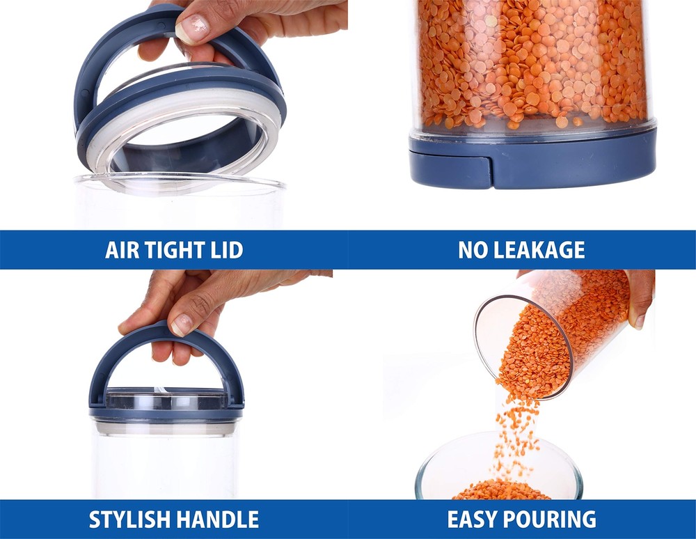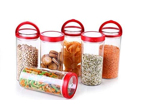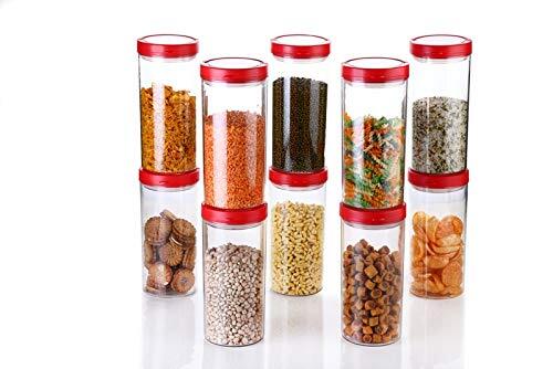 Description Perfect for Organizing your Kitchen, Modular & Stackable by Design and specially suited materials to give you longer than average life-span. Perfect for storing Rice, Dal, Pulses, Cereals, baking supplies, oats, pasta, flour, sugar, coffee, tea, snacks, nuts, papad, dry fruits etc. Perfect for Organizing your Kitchen, Modular & Stackable by Design and specially suited materials to give you longer than average life-span. Perfect for storing Rice, Dal, Pulses, Cereals, baking supplies, oats, pasta, flour, sugar, coffee, tea, snacks, nuts, papad, dry fruits etc. BPA Free and Food Grade Material ---- Made of durable Food grade plastic which is BPA Free, these containers are designed for longer life than many other brands plastic containers. Clear containers make it convenient to see what’s inside. These Durable containers have been specially designed to MINIMIZE SPACE and will easily fit into your refrigerator, freezer or cupboard which enables you to get the kitchen organized and frees up space in the pantry. You can store crafts, office supplies, and toys for kids, baby products and more to fit a variety of home storage and organization needs. Recommended as pulses, cereals, tea coffee, dry fruits containers, sugar storage containers Air Tight freshness seal lock ensures that your contents stay fresh until you need them. This container set includes 10 Containers with a storage capacity of 1400 Ml. Size: 1400 Ml -20x10x10 CM.
