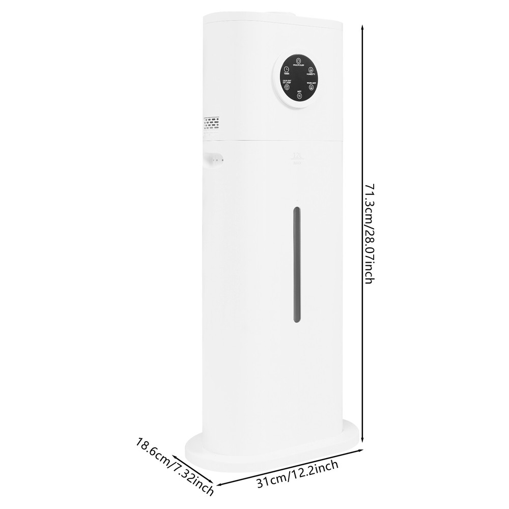 Mist Humidifier with Remote Control Smart Humidifier Humidifier for Bedroom USA Description A powerful humidifier allows you to bid farewell to dry rooms. The premium heating elements enable it to produce up to 0.16gal of mist per hour, which can maintain the space at an appropriate humidity level in a short time. The intelligent control device, low-noise operation, high efficiency, simple operation, diverse functions, and stylish appearance will bring you a good user experience. Whether it's home or office, it can provide you with a more comfortable and healthy indoor environment. Key Features Build to Last: The premium ABS housing is robust, abrasion-resistant, anti-aging, and impact-resistant, ensuring a long service life. High Efficiency: The 150W power and stainless steel heating head make the utilization efficiency of warm mist up to 96% and a mist output of up to 0.16Gal/h. Combined with the ultrasonic atomization plate and unique pump structure, it can quickly humidify a space of about 646ft² with delicate mist, achieving a high-efficiency indoor environment improvement. Comfortable Experience: The noise generated during product operation is only 36-45dB, almost equivalent to whispers or ordinary indoor conversations, creating a quiet and comfortable environment. The thoughtful sleep mode and 1-16 hours timed function allow you to fall asleep with peace of mind and improve sleep quality. Safety Guard: With a water shortage protection function, the product will stop working to prevent the machine from burning out and other safety hazards when the water tank is short of water. User-friendly: The adjustable functions of cold and warm mist, as well as three levels of mist output, allow you to freely adjust according to the season and preferences. The built-in intelligent control component can control the humidity within the range of 45-95%, creating a more suitable indoor environment. Easy Operation: You can adjust the product through the intuitive LCD touch screen, or choose to control the product freely within 19.69ft by using the infrared remote control, making it easy and convenient to use. Convenient to Move: The concave handles on both sides and its lightweight(8.69 lbs) allow you to easily move it from one room to another in your house. Ready to Use: The product has been assembled. After receiving it, you only need to take out the water tank accessories, and add water and power it on, which saves time and effort. Ideal Gift: It has a stylish appearance and powerful functions, making it particularly suitable as a housewarming and holiday gift for your parents and friends. Protective Package: To prevent the product from being damaged and bumped during transportation, we packed it with foam and cartons to protect your products to the maximum extent possible. Details Water Level Window: The clear window allows you to know the remaining water without removing the cover. Large Water Tank: The 3.17gal large-capacity water tank can maintain long-term operation without the need for frequent refilling. Aromatherapy Box: It allows you to add your favorite essential oils (not included) according to the season and your mood, letting the fresh fragrance spread with the mist, relaxing your body and mind. Sturdy Base: The large base(12.2*7.32in) can ensure stable placement of the product and prevent it from tipping over. Application With a humidification area of about 646ft², it is suitable for places that need humidification, such as homes, classrooms, conference rooms, offices, gyms, etc. Specification Color: White Style: Modern Shape: Rectangle Material: ABS, Stainless Steel Assembly Required: No Mist Type: Cold, Warm Power Source: Corded Electric Plug Type: US Standard Screen Type: LCD Operation Mode: Remote Control/Touch Screen Battery Type: 2*AAA Batteries Voltage: 100-240V Power: 150W Frequency: 50/60Hz Mist Capacity: 600ml/0.16gal/h Max. Water Tank Capacity: 12L/3.17gal Adjustable Fog Volume: 3 Gears Noise: 36-45dB Time Range: 1-16H Remote Control Distance: 6m/19.69ft Applicable Area: About 60㎡/646ft² Power Cord Length: 1.65m/5.41ft Product Size: 31*18.6*71.3cm/12.2*7.32*28.07in Package Size: 79*33.5*22.5cm/31.1*13.19*8.86in Gross Weight: 4.15kg/9.15 lbs Net Weight: 3.94kg/8.69 lbs Package Included 1* Humidifier 1* Remote Control 1* English Manual 1* Cleaning Brush Notes 1. Please read the operating manual completely before use. And pay particular attention to the safety instructions included. 2. Please allow the slight color difference caused by the shooting light and 1-3cm error due to manual measurement, and make sure you do not mind before ordering. Payment Delivery details Terms of sales About us Contact us Payment We accept ebay payment 。 Fees such as import duties, taxes are not included in the item price or shipping costs. These charges are the buyer's responsibility. Delivery details Shipping: 2-9 working days to: USA Terms of sales We maintain high standards of excellence and strive for hundred percent customer satisfaction. Feedback is very important to us. We hope that you contact us immediately before you give neutral or negative feedback, so that we can address your concerns. It is impossible to address issues if we do not know about them! About us Your satis faction is our ultimate goal. We work hard to earn your trust and future business. Our certified technicians have tested each item before shipping. The unit comes with 1 year limited warranty on all manufacturing defects. a) If you receive a defective item, you may return it or ask for a discount. Please contact us within 14 days after you receive the package. b) What you returned must be intact and in its original packaging as re? u. Customer is responsible for shipping costs of the returned item. c) We will cover the cost of shipping back t with the shipping rate indicated in the registration page. We will send you a new unit or refund the full payment you paid. Thank you. Contact us Business Hour Business 