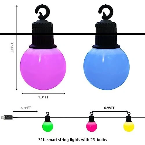 Smart String Lights 31.17FT 25pcs G40Bulb Outdoor APP& Remote Control