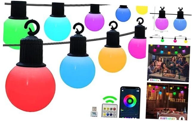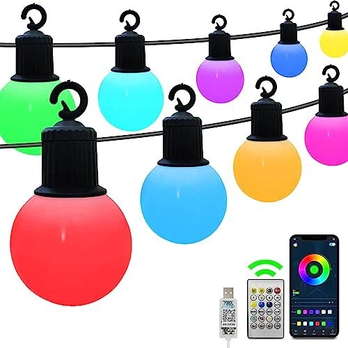 Occasion: Wedding, Christmas Manufacturer: Does Not Apply Style: RGB-G40-25Bulbs-31ft-USB Number of Light Sources: 25 gtin13: Does Not Apply Connectivity Technology: USB Date First Available: July 8, 2023 Item model number: Does Not Apply Special Feature: Color Changing Item Length: 7.91 Power Source: USB Included Components: Remote Control, USB Item Height: 4.76 Control Method: App Indoor Outdoor Usage: Outdoor, Indoor MPN: Does Not Apply Water Resistance Level: Waterproof Package Dimensions: 7.91 x 5.2 x 4.76 inches Color: Multicolor Seasons: winter Light Source Type: LED Wattage: 5 watts Batteries Required: No Number of Items: 1 Batteries Included: No Controller Type: Remote Control, App Control, Button Control Item Weight: 12.6 ounces EAN: Does Not Apply Item Width: 5.2 Type: Does Not Apply UPC: Does Not Apply Wireless Communication Technology: Bluetooth Bulb Shape Size: G40 Light Color: Multicolor Theme: Wedding Material: Acrylonitrile Butadiene Styrene Special Features: Color Changing Brand: Does Not Apply Connectivity Protocol: Bluetooth