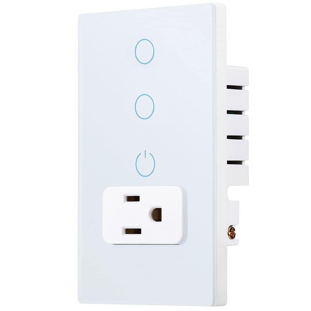 1. This smart switch and outlet combo is a game-changer for home automation! The sleek touch controls and WiFi connectivity make it super convenient—control lights and plugged-in devices from anywhere using the Tuya app. Installation was straightforward, and the dual functionality saves so much space. Love that it works with Alexa and Google Assistant for voice commands. The build quality feels solid, and the white finish blends perfectly with my decor. Highly recommend for anyone looking to upgrade their home with smart tech!