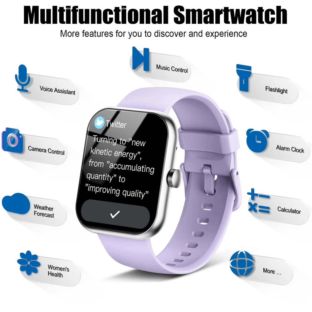 Y66 2025 New Fitness Tarcker Smart Watch Smart watch that can Make/Answer Calls and Read Smart Notifications The smart watch for men and women uses the latest Bluetooth 5.3 connection technology, which can answer/make calls stably and clearly. At the same time, you will accurately receive text messages, information notifications from Facebook, Youtube, ins, tiktok and other APPs, helping you not to miss any information and news. Effectively solve the situation that it is inconvenient to look at the mobile phone when you are meeting, exercising or else. 24-Hour activity tracking watch During your exercise, the smartwatch will record your data like heart rate, steps, calories burned, distance in real time. With this logging data, you can better understand your own exercise and share it with your friends or family. 100+ sports modes fitness tracker watch The activity tracker watch supports 100+ sports modes, including Running, Walking, Hiking, Basketball, Boating, Climbing, Cycling, Fitness, Football and so on. 24/7 health monitoring smartwatch The fitness tracker is equipped with high-performance optical sensors that will record your all day activities, achieve your wellness goals. Fitness watch accurately monitors your heart rate, blood oxygen, stress levels, sleep status, etc. You can view a week's worth of health reports in app. Sleep Tracking : Score your sleep quality and makeprofessional suggestions, so you can sleep better. Heart Rate Monitoring : Real-time monitoring of your heart rate, timely detection of problems to protect your health. Multi-function smartwatch More useful features are waiting for you to discover, such as timer, stopwatch, alarm clock, sedentary reminder, music control, weather forecast, brightness adjustment, photo control, calculator, etc. 1.96'' HD Touch Screen smart watch The smart watch is equipped with a 1.96" HD full touch color screen, delivering highly responsive touch, which can bring you a unique visual and better interactive experience. With the companion GloryFit app, you can download more than 200 free personalised watch faces and set it as your desktop. In addition, you can also select your favorite photo like family, selfie, landscape photo as a wallpaper to make your own stylish smartwatch. IP68 Waterproof Smart watch with lP68 waterproof function, can shower, rain, swimming, etc. Long Battery Life The fitness tarcker smart watch has a built-in large capacity battery, which can be fully charged in 2 hours, can be used for up to 7 days and has a long standby time of about 30 days. The list of products you will receive are smartwatch *1, original strap *1, charging cable *1, manual *1. β 1.96'' HD Touch Screen & 200+ DIY Watch Faces - The smart watch for men women is equipped with a 385*472mm extra-large HD full touch color screen, delivering highly responsive touch, which can bring you a unique visual and better interactive experience. With the companion GloryFit app, you can download more than 200 free personalised watch faces or select your favorite photo like family, selfie, landscape photo as a wallpaper to make your own stylish smartwatch. π Make/Answer Calls & Smart Notifications 2025 - The new digital smart watch uses the latest Bluetooth 5.3 connection technology, which can answer/make calls stably and clearly, and view call history and store contacts. The smartwatches also provides notifications of social media messages including facebook, whatsApp, instagram, twitter, etc. through vibrating alerts. Effectively solve the situation that it is inconvenient to look at the mobile phone when you are meeting, exercising or else. π 24 Hour/7 Day Health Monitoring - The iOS and Android smart watch is equipped with high-performance optical sensors that will record your all day activities, achieve your wellness goals. Fitness watch accurately monitors your heart rate, blood oxygen, stress levels, sleep status, etc. You can view a week's worth of health reports in app. Hope you can develop a healthier lifestyle with the fitness tracker. π110+ Sports Modes & IP68 Waterproof - The fitness tracker watch supports 110+ sports modes, including Running, Walking, Hiking, Basketball, Boating, Climbing, Cycling, Fitness, Football and so on. During your exercise, it will record your data like heart rate, steps, calories burned, distance in real time. This sport smartwatch is designed with IP68 waterproof, so it won't be damaged even when exercising, washing hands and sweating. π More Useful Functions and Long Battery Life - More useful features are waiting for you to discover, such as timer, stopwatch, alarm clock, sedentary reminder, music control, weather forecast, camera control, calculator, etc. The fitness tarcker smart watch has a built-in large capacity battery, which can be fully charged in 2 hours, can be used for up to 7 days and has a long standby time of about 30 days. The smartwatch is compatible with Android phones and iPhone.