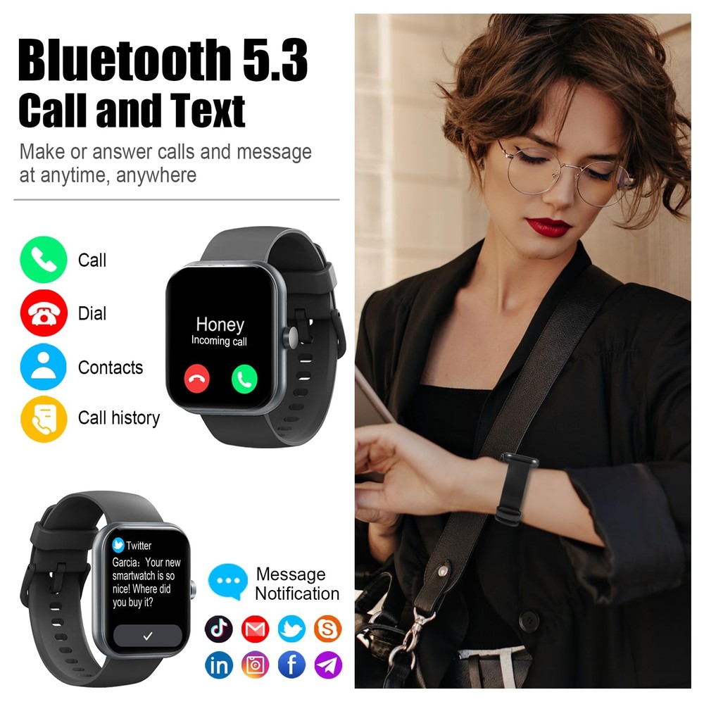Y66 2025 New Fitness Tarcker Smart Watch Smart watch that can Make/Answer Calls and Read Smart Notifications The smart watch for men and women uses the latest Bluetooth 5.3 connection technology, which can answer/make calls stably and clearly. At the same time, you will accurately receive text messages, information notifications from Facebook, Youtube, ins, tiktok and other APPs, helping you not to miss any information and news. Effectively solve the situation that it is inconvenient to look at the mobile when you are meeting, exercising or else. 24-Hour activity tracking watch During your exercise, the smartwatch will record your data like heart rate, steps, calories burned, distance in real time. With this logging data, you can better understand your own exercise and share it with your friends or family. 100+ sports modes fitness tracker watch The activity tracker watch supports 100+ sports modes, including Running, Walking, Hiking, Basketball, Boating, Climbing, Cycling, Fitness, Football and so on. 24/7 health monitoring smartwatch The fitness tracker is equipped with high-performance optical sensors that will record your all day activities, achieve your wellness goals. Fitness watch accurately monitors your heart rate, blood oxygen, stress levels, sleep status, etc. You can view a week's worth of health reports in app. Sleep Tracking : Score your sleep quality and makeprofessional suggestions, so you can sleep better. Heart Rate Monitoring : Real-time monitoring of your heart rate, timely detection of problems to protect your health. Multi-function smartwatch More useful features are waiting for you to discover, such as timer, stopwatch, alarm clock, sedentary reminder, music control, weather forecast, brightness adjustment, photo control, calculator, etc. 1.96'' HD Touch Screen smart watch The smart watch is equipped with a 1.96" HD full touch color screen, delivering highly responsive touch, which can bring you a unique visual and better interactive experience. With the companion GloryFit app, you can download more than 200 free personalised watch faces and set it as your desktop. In addition, you can also select your favorite photo like family, selfie, landscape photo as a wallpaper to make your own stylish smartwatch. IP68 Waterproof Smart watch with lP68 waterproof function, can shower, rain, swimming, etc. Long Battery Life The fitness tarcker smart watch has a built-in large capacity battery, which can be fully charged in 2 hours, can be used for up to 7 days and has a long standby time of about 30 days. The list of products you will receive are smartwatch *1, original strap *1, charging cable *1, manual *1. ⌚【1.96'' HD Touch Screen & 200+ DIY Watch Faces】 The smart watch for men women is equipped with a 385*472mm extra-large HD full touch color screen, delivering highly responsive touch, which can bring you a unique visual and better interactive experience. With the companion GloryFit app, you can download more than 200 free personalised watch faces or select your favorite photo like family, selfie, landscape photo as a wallpaper to make your own stylish smartwatch. 📞【Make/Answer Calls & Smart Notifications 2024】 The new digital smart watch uses the latest Bluetooth 5.3 connection technology, which can answer/make calls stably and clearly, and view history and contacts. The smartwatches also provides notifications of social media messages including facebook, whatsApp, instagram, twitter, etc. through vibrating alerts. Effectively solve the situation that it is inconvenient to look at the mobile when you are meeting, exercising or else. 💖【24 Hour/7 Day Health Monitoring】 The iOS and Android smart watch is equipped with high-performance optical sensors that will record your all day activities, achieve your wellness goals. Fitness watch accurately monitors your heart rate, blood oxygen, stress levels, sleep status, etc. You can view a week's worth of health reports in app. Hope you can develop a healthier lifestyle with the fitness tracker. 🏊【110+ Sports Modes & IP68 Waterproof】 The fitness tracker watch supports 110+ sports modes, including Running, Walking, Hiking, Basketball, Boating, Climbing, Cycling, Fitness, Football and so on. During your exercise, it will record your data like heart rate, steps, calories burned, distance in real time. This sport smartwatch is designed with IP68 waterproof, so it won't be damaged even when exercising, washing hands and sweating. 🚀【More Useful Functions and Long Battery Life】 More useful features are waiting for you to discover, such as timer, stopwatch, alarm clock, sedentary reminder, music control, weather forecast, camera control, calculator, etc. The fitness tarcker smart watch has a built-in large capacity battery, which can be fully charged in 2 hours, can be used for up to 7 days and has a long standby time of about 30 days. The smartwatch is compatible with Android phones and iPhone.
