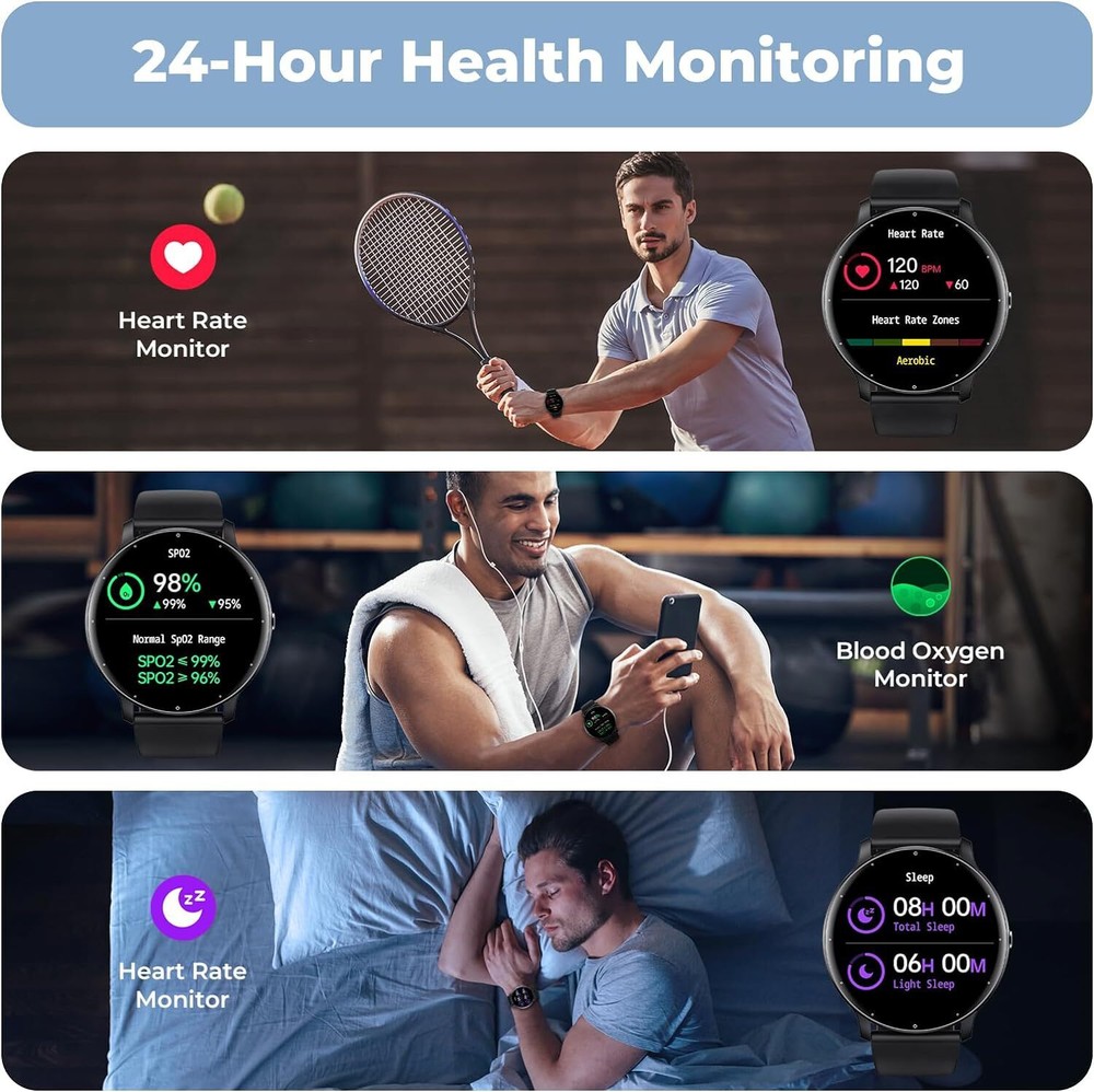 $ 3.7Waterproof Smart Watch for Men Women with Heart Rate Monitor and Fitness Tracker Bluetooth