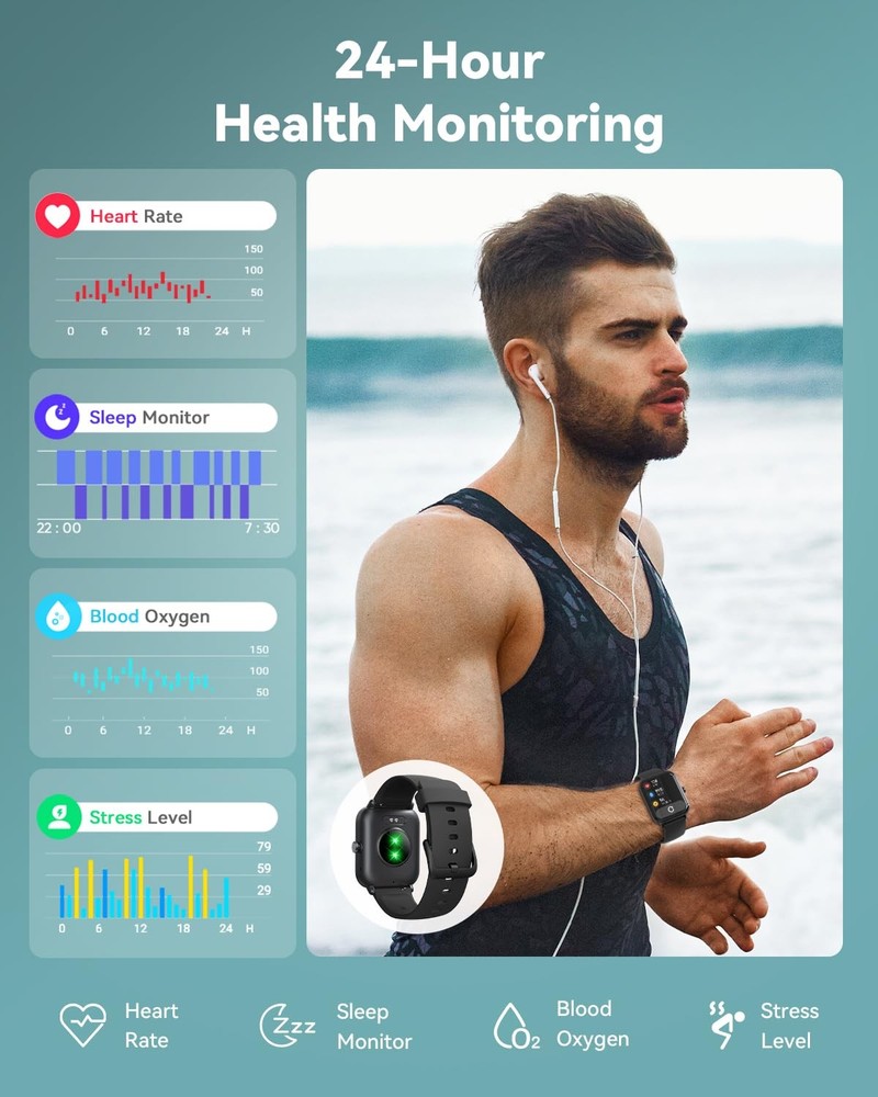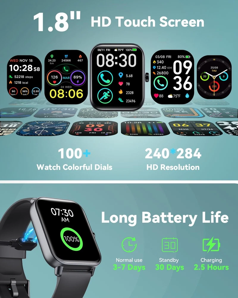Before purchasing any product, many people may feel hesitant and uncertain. However, we want to assure you that choosing our multifunctional smart watch is a wise decision. We have certifications from third-party organizations such as FCC, VISTA LABS, TCT, and QCA, which guarantee the quality of our Smartwatch fitness tracker. These certificates ensure that our smartwatches meet strict standards for safety, performance, and reliability, providing customers with peace of mind when purchasing high-quality products. Each of our men's/women's smart watches has been carefully designed. Our R&D team is dedicated to innovating and perfecting every feature to meet your needs and expectations. We pay attention to quality and detail and use the best materials and most advanced technologies to manufacture each product. Although we are not perfect, we will do our utmost to provide you with the best service and support. We are pleased to offer an extended 1-year warranty and 24-hour customer service support. We understand that purchasing a product is an investment in your life, and our long-term warranties and reliable after-sales service are further commitments to the quality of our products and our dedication to ensuring customer satisfaction. Your satisfaction is the best reflection of our core values. We hope that our waterproof smart watch for iPhone and Android phones will not only provide excellent functionality and experience but also bring happiness and a sense of achievement. Let's enjoy this wonderful journey together! 【Bluetooth 5.3 Call & Alexa Voice Control 】The Upgraded smart watches for men(women) is equipped with built-in hd speaker, with Bluetooth 5.3, you can answer/make calls directly from your smart watches when your phone is out of reach, and you can also view your call history, frequent contacts, and dial-up calls. Fitness tracker smartwatches work with Alexa, you can inquire about news, weather, set alarms, helping us to live more conveniently, smarter, and healthier. 【120+ Sports Modes& IP68 Waterproof】The smart watches for women(men) supports over 120 sports modes, including Walking, Running, Baseball, Basketball, Hiking, Climbing, Cycling, Football. Swimming, Yoga and more. IDW19 fitness watch provide more accurate exercise data, recording your steps, calories, and distance traveled throughout the day, allowing you to better understand your exercise situation and plan your exercise schedule accordingly. IP68 water proof sports watch allows you use it even while washing hands, or swimming or surfing. 【1.8 Inches Touch Screen & 120+ Dials】The 1.8 inches watch for women(men) has an ultra-high-definition colorful touch screen, With 240 * 284 resolution, you can view messages and data more clearly and easily. There are over 120 different styles of dials for you to choose from, and you can also upload photos of your family, pets, and scenery to customize a dial with your own style. 【24/7 Health Monitor and Sleep Tracker】Mens/womens watch equiped with 7 high-performance optical sensors, continuously recording your daily walking steps, distances, calories, and monitoring your heart rate, SpO2, stress level, and sleep status (deep sleep, light sleep, and wakefulness). More features, such as sedentary reminders and water drinking reminders, allow you to keep track of your health data and constantly remind you to maintain a healthy lifestyle. Non-medical use. 【Message Notification & More Features】Women/Mens smart watch supports messages reminders for SMS, Email, SNS, Facebook, WhatsApp, Instagram, Twitter,Telegram, Tiktok etc. (Not supporting reply messages) All notifications reminded by vibration, so we never miss an important call or message. More Features, such as Weather forecasts, Stopwatch, Raise to wake, Alarms, Timer, Sedentary Reminder, Flashlight, Music and Camera control, Motion Recognition, Breather guide, Find phone functionality, etc 【Wide Compatibility & Long-Battery Life】Smart watch for android phones with Android 6.0 or above,smart watch for iphone compatible with iOS 9.0 and above.Including but not limited to 6/7/8/9/10/11/12/13/14/15/16 series, Sa-ms-ung, Goo-gle, Nexus, Microsoft, Motorola, Huawei, Xiaomi HTC and More.This Android smart watch can be fully charged in just 2.5 hours and can last for 7 days of normal use and 30 days of standby. 【5-Year Gua-ran-tee】store promise our customers a 5-year warranty for IDW19 bluetooth smart watch. For any product problem or suggestions, please don't hesitate to contact us. We will response within 24 hours to solve your problem. We highly value your experience in stores, and your comfort comes first.