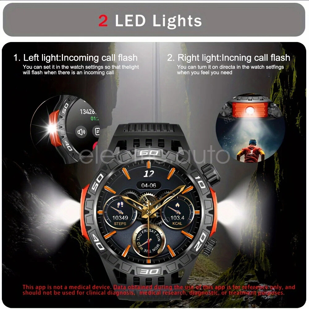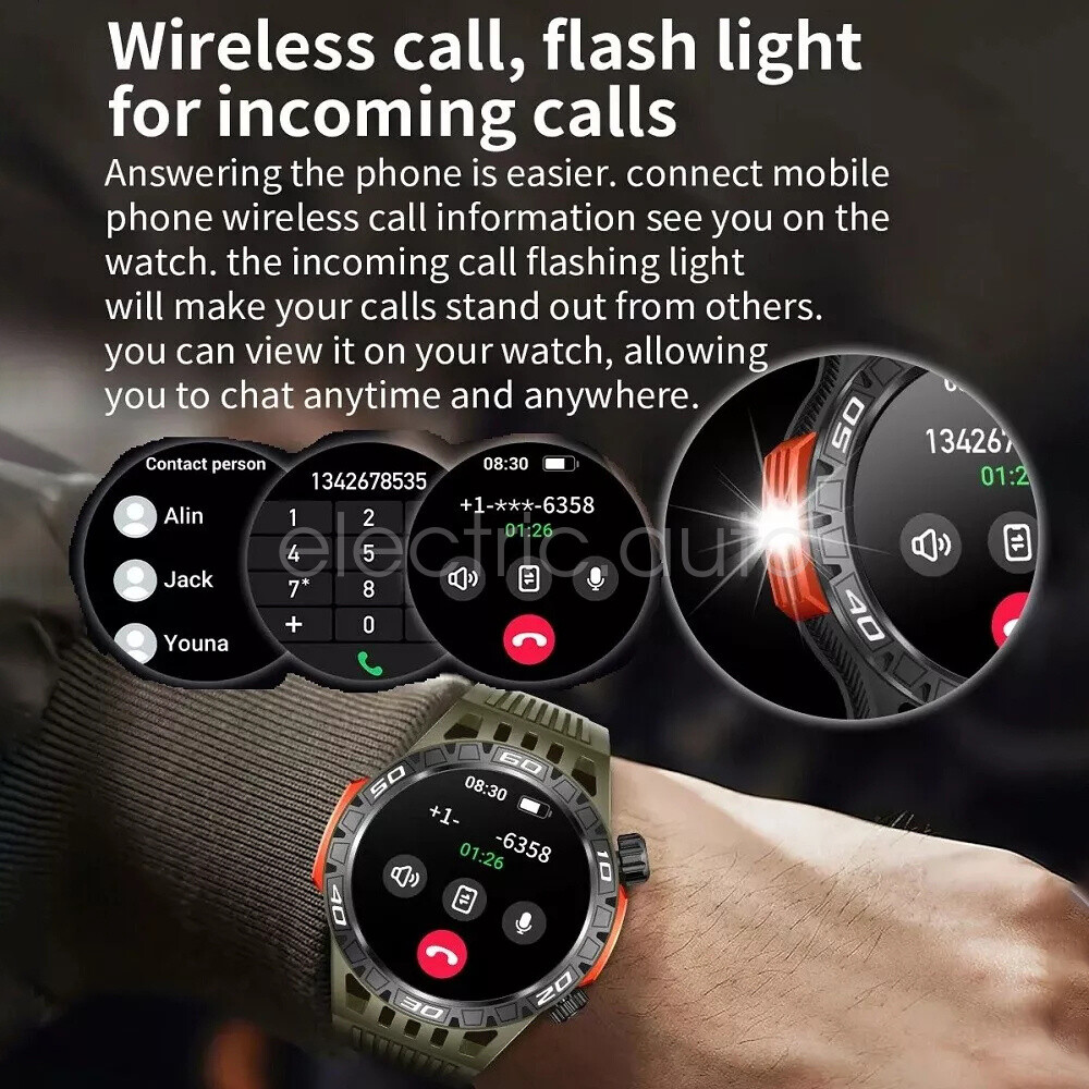 Product View Detail Features: 1. There is a high brightness LED flashlight on the side of the watch, which can help you see the environment clearly in unlit places. 2. Bluetooth Calling Function. After the watch is connected to your cell phone, you can use the watch to make or receive calls, and you can also set the SOS emergency call button. 3. More than 200 free online watches can be downloaded and used at will. 4.Heart rate, blood oxygen and blood pressure detection, sleep monitoring. 5. 100+ exercise modes, record calories, distance and exercise track. 6. Weather, message push, music control, stopwatch, timer, alarm, business card, calendar, calculator, mobile search, camera and other functions. 7. 450mAh large battery, the use time is more than 30% longer than ordinary smart watches. 8. Special composite material, closed by aluminum alloy metal, makes it more durable. Supports use in harsh environmental conditions, such as heat-resistant, cold-resistant, moisture-proof and water-resistant, confident in a variety of harsh conditions, perfect for wearing in outdoor activities. Specification: Product Name: Smart Watch Screen size: 1.46 inches Screen resolution: 360*360 System requirements: Android 5.1 or above, IOS 8.2 or above Bluetooth version: 5.0 Operation mode: touch control Physical buttons: 2 (with encoder) Watch APP: FitCloudPro Battery capacity: 450mah Standby time: 30 days Battery life: 5-7 days (user usage method and frequency situation) Charging method: magnetic charging Charging time: 2 hours Waterproof rating: IP68 Case material: zinc alloy Strap material: steel strap/silicone (optional) Strap width: 22mm (removable and replaceable) Case size: 48.6*13.5mm Language support: Chinese, English, German, French, Italian, Spanish, Polish, Belgian, Portuguese, Vietnamese Package Included: 1*smart watch 1*USB cable 1*User Manual Attention: 1. Wearable devices monitor human activities through electronic sensors. They are at the level of consumer electronics. Some deviation is normal. The health test results of the watch are for reference only and cannot be compared with medical devices. When the watch is placed on the surface of an object, there will be test results such as heart rate/blood pressure. This is normal and not a product defect. 2. As the firmware is updated, the user interface will be updated accordingly. Pictures are for reference only, everything is subject to the actual product. 3. This product is an electronic product. Do not use this product to shower hot water. Do not expose it to high temperatures. 4. Please download the APP and bind the watch first, do not use your cell phone Bluetooth to connect the watch directly. If it is already connected, please remove the matching watch from the cell phone Bluetooth matching device. 5. Due to the difference of light and screen, the color of the item may be slightly different from the picture, thank you very much! Shipping Policy Payment Method Returns Policy Shipping Policy We only accept your Ebay Address ,Please Make sure it's 100% right. The items you ordered will be shipped out in 1 business day by Hong Kong Air Mail when your payment is clear. The arrival time is 5-20 business days to United States usually. We maintain high standards of excellence and strive for 100% customer satisfaction! Feedback is very important to us. We request that you contact us immediately BEFORE you give us neutralor negative feedback, so that we can satisfactorily address your concerns. Payment Method Returns Policy Copyright © 2017 DataCaciques Smart Watch LED Light GPS Track Compass Bluetooth Call Waterproof Sport Watch Home Payment Shipping About us Contact us Store Categories Store Categories Consumer Electronics PC&Tablet Accessories Mobile Phone Accessories Sound&Vision Headphones Watches Camera Led Lights Others Auto Car Accessories Lights Others Motorcycle Motor Accessories Lights Others Headlamp&Torch Others Other Product View Detail Features: 1. There is a high brightness LED flashlight on the side of the watch, which can help you see the environment clearly in unlit places. 2. Bluetooth Calling Function. After the watch is connected to your cell phone, you can use the watch to make or receive calls, and you can also set the SOS emergency call button. 3. More than 200 free online watches can be downloaded and used at will. 4.Heart rate, blood oxygen and blood pressure detection, sleep monitoring. 5. 100+ exercise modes, record calories, distance and exercise track. 6. Weather, message push, music control, stopwatch, timer, alarm, business card, calendar, calculator, mobile search, camera and other functions. 7. 450mAh large battery, the use time is more than 30% longer than ordinary smart watches. 8. Special composite material, closed by aluminum alloy metal, makes it more durable. Supports use in harsh environmental conditions, such as heat-resistant, cold-resistant, moisture-proof and water-resistant, confident in a variety of harsh conditions, perfect for wearing in outdoor activities. Specification: Product Name: Smart Watch Screen size: 1.46 inches Screen resolution: 360*360 System requirements: Android 5.1 or above, IOS 8.2 or above Bluetooth version: 5.0 Operation mode: touch control Physical buttons: 2 (with encoder) Watch APP: FitCloudPro Battery capacity: 450mah Standby time: 30 days Battery life: 5-7 days (user usage method and frequency situation) Charging method: magnetic charging Charging time: 2 hours Waterproof rating: IP68 Case material: zinc alloy Strap material: steel strap/silicone (optional) Strap width: 22mm (removable and replaceable) Case size: 48.6*13.5mm Language support: Chinese, English, German, French, Italian, Spanish, Polish, Belgian, Portuguese, Vietnamese Package Included: 1*smart watch 1*USB cable 1*User Manual Attention: 1. Wearable devices monitor human activities through electronic sensors. They are at the level of consumer electronics. Some deviation is normal. The health test results of the