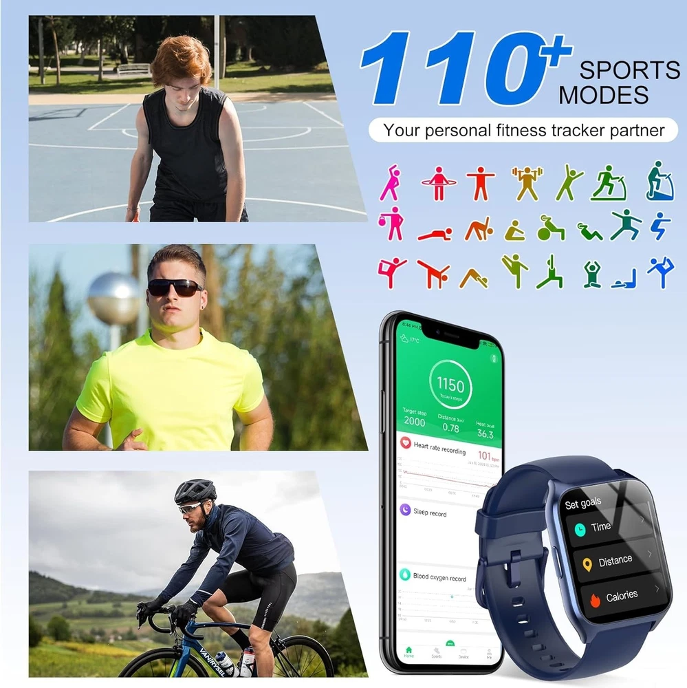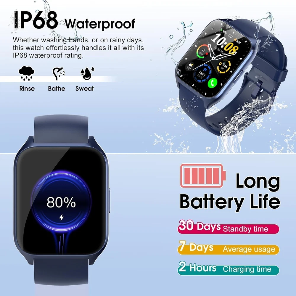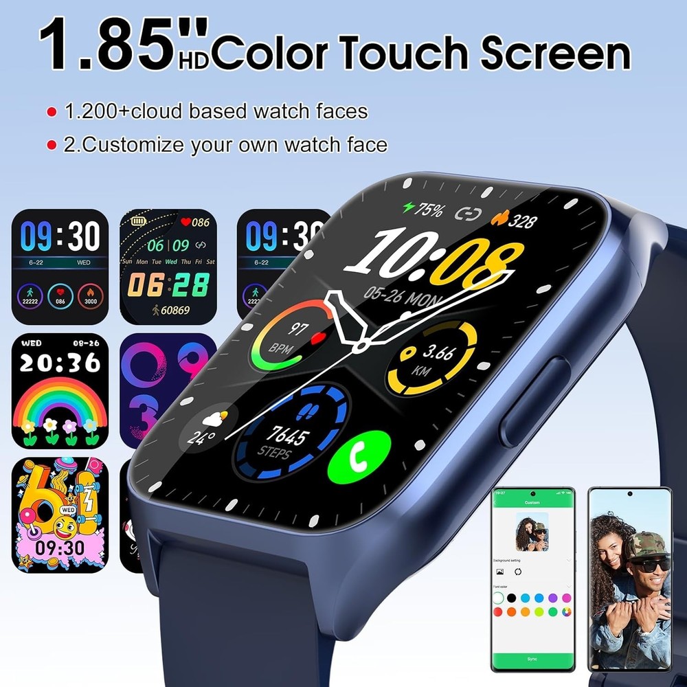 1.85-inch HD Screen and 200+ Customized Dials: With 1.85" HD touch color screen, the smart watches for men is designed with clear and bright display, providing you with high-quality touch and visual experience. 4 levels manually adjust the brightness, so you can clearly see the displayed time and exercise data even in direct sunlight. You can choose from over 200 designs of watch faces of smart watch for men and women, or customize your favorite picture as a dial to match your daily mood. Bluetooth 5.3 for Make/answer calls & smart notifications: With a built-in microphone and Hi-Fi speaker, this new look men's smartwatch lets you stay in touch with your family or friends anytime, anywhere by using Bluetooth to make/receive calls (with call logs, contacts) you can stay connected even during fitness, outdoor sports or other activities. You can also receive social media, Facebook, WhatsApp and SMS alerts right on your wrist, you will never miss an important message or notification. 100+ Sport Modes and IP68 Waterproof Smart Watch: The fitness watch supports over 110 sports modes, including running, walking, hiking, badminton, basketball, boating, climbing, cycling, fitness, soccer, yoga, and more. This allows you to accurately track your exercise time and calories burned, helping you maintain a healthy balance between activity and rest. With an IP68 water and dust resistance rating, the sports watch activity tracker can withstand sweat, hand washing, or rain. Outstanding Battery Life and Versatile Features: Powered by a high-capacity battery, this fitness activity smartwatch for men and women fully charges in just 2 hours, providing up to 7 days of daily use and around 30 days of standby time. The men's smartwatch includes multiple features such as a timer, stopwatch, alarm clock, find your phone, sedentary reminder, music control, weather forecast, Do Not Disturb mode, brightness adjustment, photo control, and female cycle tracking. 24/7 Health Monitoring: The MT65 smartwatch, equipped with advanced sensors, can accurately monitor your heart rate in real-time. It automatically tracks your sleep status (deep/light/wakeful sleep) throughout the night and provides a comprehensive sleep quality analysis. The DUSONLAP smart watch can also record all-day activities such as steps, distance, and calories. All data is presented in the "GloryFit" app, offering a comprehensive view of your health status. Wide Compatibility and Customer Support: Men's digital watch works seamlessly with iOS and Android smartphones (compatible with iOS 9.0 or higher and Android 6.0 or higher). Choose a brand dedicated to providing superior products and customer service. Enjoy a 24-month warranty for peace of mind. We value your feedback and encourage you to contact us with any product issues or suggestions. Your satisfaction is our top priority, and your feedback is critical to helping us improve our products.
