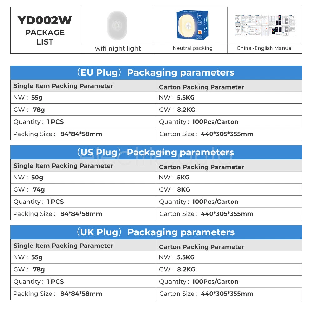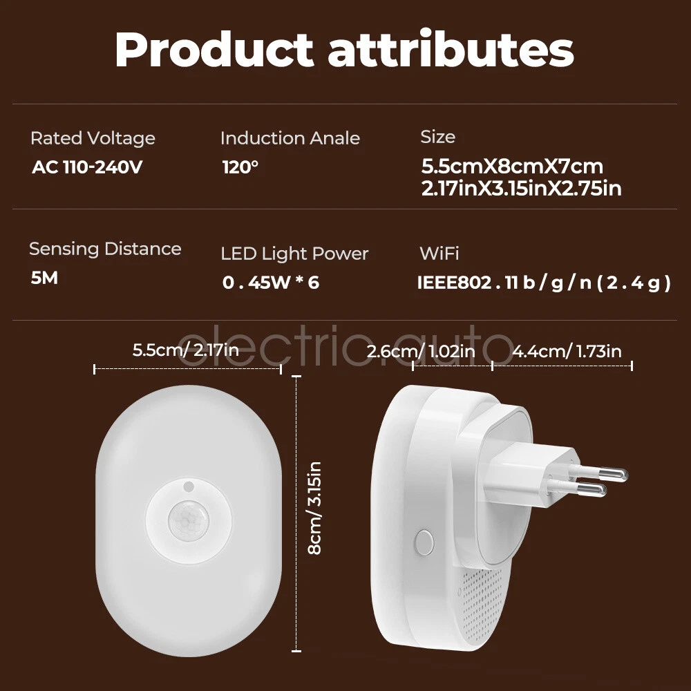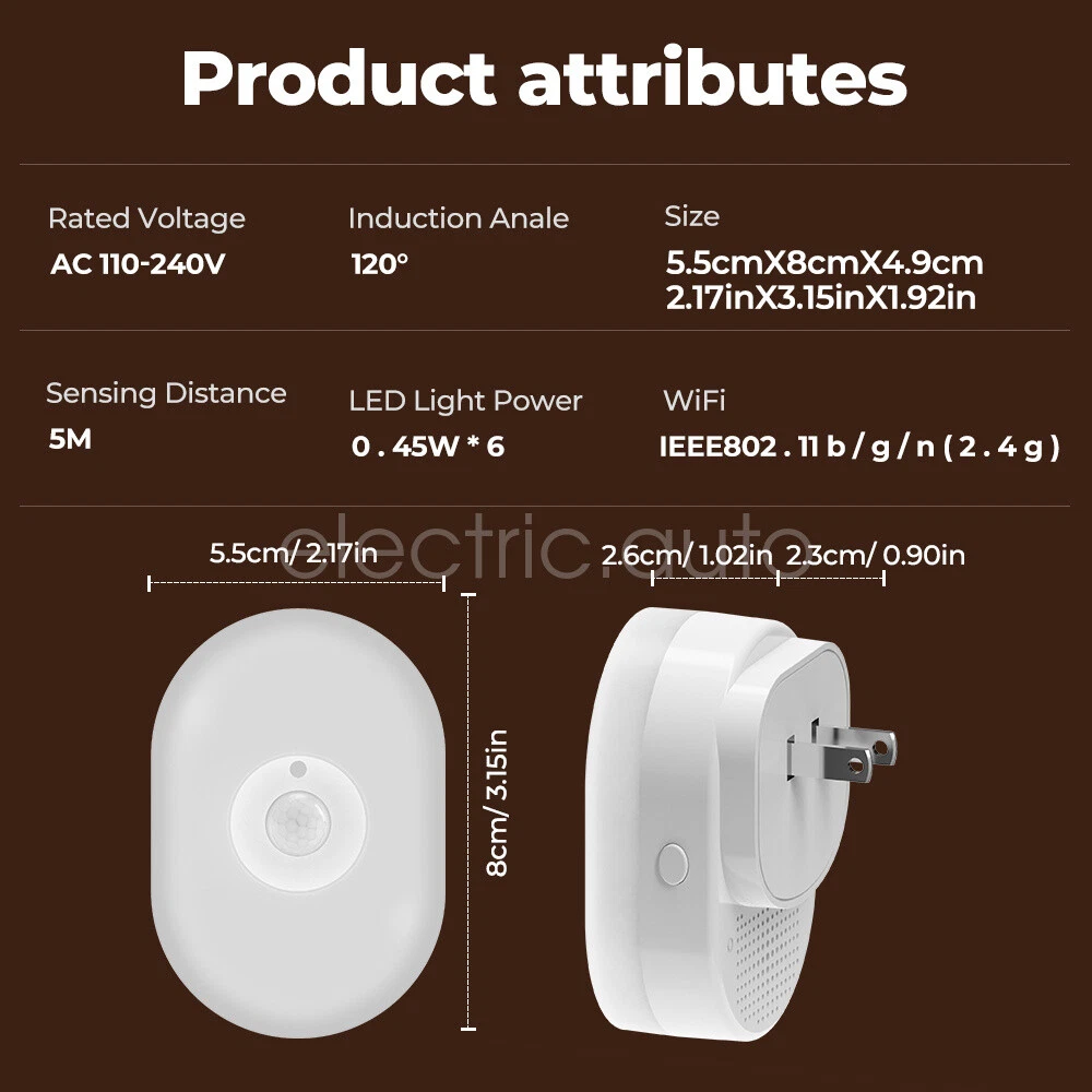 Product View Detail Features: Dual Mode Connection & Speed Improvement The sensor night light supports Wifi+Bluetooth dual-mode connection, providing a more stable network connection and increasing the speed by 2 times compared to a single Wifi connection, ensuring a fast response and seamless control experience Intelligent Sensing and Convenient Lighting Equipped with WIFI night light function and motion sensing function, it can automatically light up when people pass by, providing convenient night lighting and avoiding safety hazards when walking at night, while supporting linkage with other smart devices to enhance the smart home experience Customized Lighting Experience Users can freely set white light or warm light in the APP, and make infinite brightness adjustment to meet the lighting needs of different scenes and personal preferences The color light mode also allows you to set different colors of light to create an atmosphere for a party or date. Intelligent control and energy saving Support Amazon Alexa and Google Home Assistant voice control for brightness, color and on/off voice control With timer function and countdown function, you can preset the switching time according to your living habits, saving energy and providing convenience at the same time. Healthy Lighting and Intelligent Management Using 6 imported LED light beads, the light is soft and not harsh, protecting eye health With group function, it is convenient to control multiple night lights in a unified way. Micro-bright mode and constant light time adjustment function, which can maintain the comfort of the night environment without affecting the rest of the family History and sharing function, convenient for users to check the sensing record and share the control with family members. Offline reminder function ensures that the device is always online to safeguard the family's safety. Product Specification: Sensing angle: 120 Sensing distance: 5 meters left Voltage: 110-240V 50H Specification: Europe Working temperature: -10℃-50 Wifi Type: 2.4GH Application:Smart Lif Size: 76*36*30m Product List: 1×Induction night 1×Description Shipping Policy Payment Method Returns Policy Shipping Policy We only accept your Ebay Address ,Please Make sure it's 100% right. The items you ordered will be shipped out in 1 business day by Hong Kong Air Mail when your payment is clear. The arrival time is 5-20 business days to United States usually. We maintain high standards of excellence and strive for 100% customer satisfaction! Feedback is very important to us. We request that you contact us immediately BEFORE you give us neutralor negative feedback, so that we can satisfactorily address your concerns. Payment Method Returns Policy Copyright © 2017 DataCaciques Smart Night Light WIFI Bluetooth Remote Control Motion Sensor Home LED RGB Lamp Home Payment Shipping About us Contact us Store Categories Store Categories Consumer Electronics PC&Tablet Accessories Mobile Phone Accessories Sound&Vision Headphones Watches Camera Led Lights Others Auto Car Accessories Lights Others Motorcycle Motor Accessories Lights Others Headlamp&Torch Others Other Product View Detail Features: Dual Mode Connection & Speed Improvement The sensor night light supports Wifi+Bluetooth dual-mode connection, providing a more stable network connection and increasing the speed by 2 times compared to a single Wifi connection, ensuring a fast response and seamless control experience Intelligent Sensing and Convenient Lighting Equipped with WIFI night light function and motion sensing function, it can automatically light up when people pass by, providing convenient night lighting and avoiding safety hazards when walking at night, while supporting linkage with other smart devices to enhance the smart home experience Customized Lighting Experience Users can freely set white light or warm light in the APP, and make infinite brightness adjustment to meet the lighting needs of different scenes and personal preferences The color light mode also allows you to set different colors of light to create an atmosphere for a party or date. Intelligent control and energy saving Support Amazon Alexa and Google Home Assistant voice control for brightness, color and on/off voice control With timer function and countdown function, you can preset the switching time according to your living habits, saving energy and providing convenience at the same time. Healthy Lighting and Intelligent Management Using 6 imported LED light beads, the light is soft and not harsh, protecting eye health With group function, it is convenient to control multiple night lights in a unified way. Micro-bright mode and constant light time adjustment function, which can maintain the comfort of the night environment without affecting the rest of the family History and sharing function, convenient for users to check the sensing record and share the control with family members. Offline reminder function ensures that the device is always online to safeguard the family's safety. Product Specification: Sensing angle: 120 Sensing distance: 5 meters left Voltage: 110-240V 50H Specification: Europe Working temperature: -10℃-50 Wifi Type: 2.4GH Application:Smart Lif Size: 76*36*30m Product List: 1×Induction night 1×Description Shipping Policy Payment Method Returns Policy Shipping Policy We only accept your Ebay Address ,Please Make sure it's 100% right. The items you ordered will be shipped out in 1 business day by Hong Kong Air Mail when your payment is clear. The arrival time is 5-20 business days to United States usually. We maintain high standards of excellence and strive for 100% customer satisfaction! Feedback is very important to us. We request that you contact us immediately BEFORE you give us neutralor negative feedback, so that we can satisfactorily address your concerns. Payment Method Returns Policy Home Payment Shipping About us Contact us