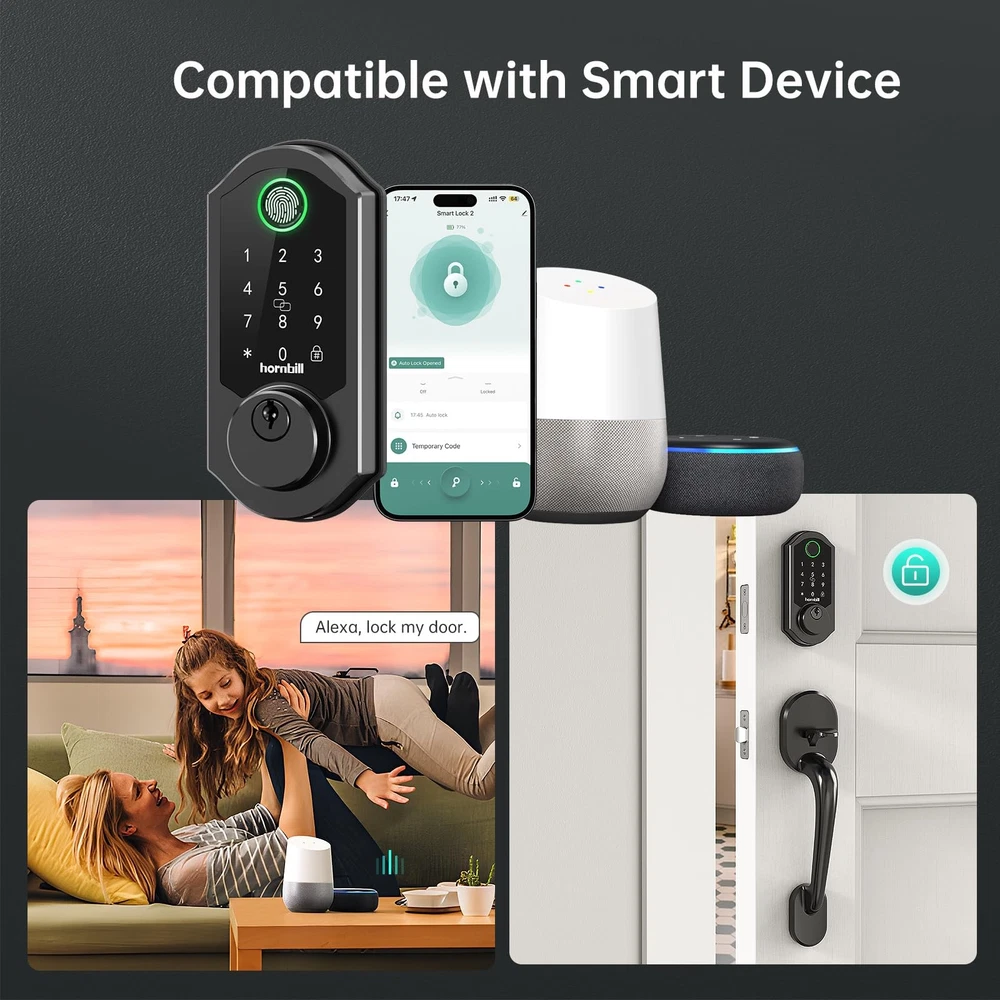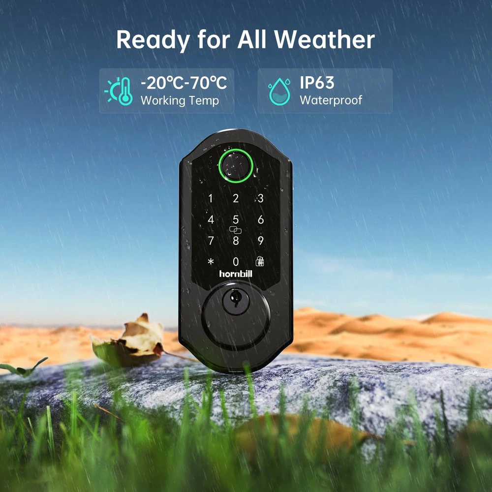 【10 in 1 WiFi Deadbolt】Features Biometric Fingerprint Reader + Bluetooth Keypad + Remotely Lock/Unlock/View Door Logs/App Control + Virtual Passcode + Keyfobs Unlock + Set Auto Lock Timer in 30 mins/One-Touch Lock + Passage Mode + Physical Keys/Emergent Charge(Type-C) + Low Battery Alert + Alexa/Google Home Voice Control. 【10 in 1 WiFi Deadbolt】Features Biometric Fingerprint Reader + Bluetooth Keypad + Remotely Lock/Unlock/View Door Logs/App Control + Virtual Passcode + Keyfobs Unlock + Set Auto Lock Timer in 30 mins/One-Touch Lock + Passage Mode + Physical Keys/Emergent Charge(Type-C) + Low Battery Alert + Alexa/Google Home Voice Control. 【Control from Anywhere】With a wifi bridge included, use the "Smart Life" App to remotely lock and unlock, share guest access, view real-time activity history, and get immediate app alerts when door state changes including invalid keypad attempts or lock tampering. Connectivity: 2.4GHz WiFi. 【Versatile & High Capicity】Backlit keypad touchscreen supports for up to 300+ digital codes/fingerprints/keyfobs Storage. Support kinds of Time-Limited/ One-timed / Temporary /Customed passcodes for different needs and people. 【Certified Security & Durability】Perform well under -25℃-70℃ with IP63-rated dust and waterproof. Built to withstand heat and cold outdoors. Made of heavy-duty alloy that can resist any human strike with a long battery lifespan (20,000 times lock/unlock once). 【Easy Installation】No extra drill. DIY in minutes with a detailed manual including our installation video. Design for US standard left or right-hand doors that thickness is 1.49-1.9''(38-48mm); Backset: 2.36''(60mm) or 2.76″(70mm); Cross Bore: 2.13''(54mm). 【Reliable Service & Assurance】60 days of return window & 1-Year replacement and LIFETIME troubleshooting & customer service support. A follow-up email with instructions and a video guide will be sent after purchase to ensure the lock function. 【Rental Hosts & Smart Home】Ideal for Airbnb short-term rental hosts, rental property management, new house contractors, and smart home residents. The app will detail who is locking and unlocking or who was denied. You can also sync and manage your multiple locks on the APP with a WiFi remote control.