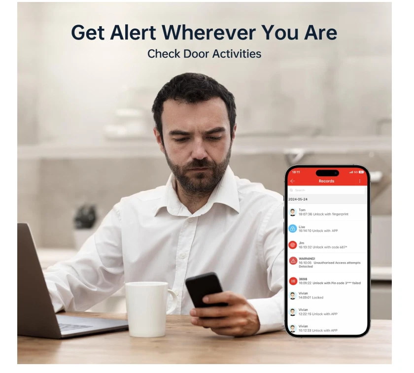 【Multiple Ways To Unlock】Hornbill smart door locks combines 10 unlock ways in one. Fingerprint/Smartphone APP control/Anti-peep Passcode/Fobs/Bluetooth/WiFi Remote Access/Alexa compatible, Voice Control/low battery alarm/sensitive touchscreen/Physical Key (included hornbill G2 Gateway,only works with 2.4GHZ ). 【No Charge Versatile APP】Just controll the lock by app without subscription. Along with 250+ multiple user codes that can be remotely generated and shared one-time, permanently, Timed, One-timed, Custom and Recurring Passcode. Share Ekey or code to friends, family members, visitors, flexible and safety. Up to 100 fingerprints and 1000 key fobs (package includes 2 IC cards) can be stored on this deadbolt smart lock. Perfect choice for Rental Apartment hosts to manage access for their guests easily. 【Advanced Security】 The smart lock for front door offers security features, including an anti-peeping password, the keypad deadbolt will alarm and lock for 5 consecutive incorrect passcode attempts, our smart locks feature various modes, including privacy mode, passage mode, silent mode, low battery alert, invalid password alert, and tamper alarm, enhancing both convenience and security. upgrade your home security with the Hornbill. 【Home Security & Build to Last】The keypad door lock with handle is made of aluminum alloy, strong and durable enough, IP63 waterproof, available temperature ranges from -25℃ to 70℃.waterproof. The door lock with code with 4AA Alkaline (not included) batteries life up to 6 months. A Backup USB-C Port for emergencies. Give your peace of mind. 【Easy Installation and Versatile Use】Our smart entry door lock set fits most US standard left and right-handed wooden doors with door thicknesses of 1.49" to 1.88" and a 60 mm/70 mm deadbolt depth requirement. With easy-to-follow user manual or video instructions and a screwdriver, installation is a breeze, saving you both time and money on locksmiths. Perfect for Rental hosts, property managers, new homeowners, and smart home enthusiasts. No extra drilling is necessary. 【Privacy/Auto Mode】When privacy mode is turned on, no user other than the administrator has permission to unlock from outdoor. Auto Locks will be activated after unlock (Set auto-lock time: 1-900s), no more worry forgetting to lock the door. 【Quality Assurance & Reliable After-Sales】30-day return, 1-year replacement, and lifetime technical support give you peace of mind. Our customer support team is always here to help you with any issues. If you have any questions about hornbill smart lock, pls don't hesitate to contact us.