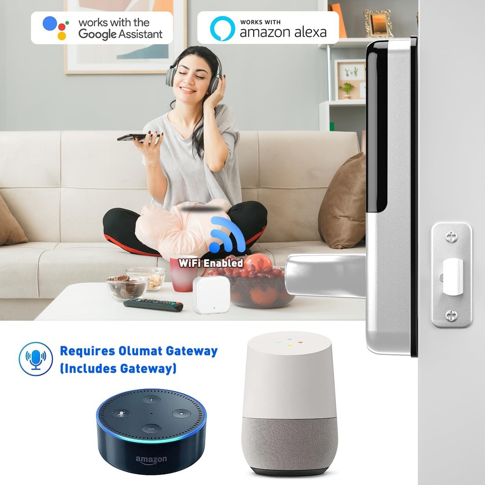 Smart Lock [8-in-1 Keyless Entry Door Lock] Fingerprint + Passcode + Fob + Wireless Fob + Smart Phone + Physical Key + Auto Lock +One Time Pin Code. Never worrying about forgetting keys and lock yourself out. [Homeowners & Rental Hosts] smart door lock is a great solution for Airbnb short-term rentals, rental property management and self-housing residents. Generate passcodes remotely and share with your visitors. [Easy installation] This code door lock is a perfect fit for most American front doors. Easy to install in minutes with just a Philips screwdriver. No extra drilling or wiring required. No locksmiths needed. The door handle can be reversible for both left and right handed doors. [Remote control / Wifi door lock]] Pair with a WiFi gateway (Optional accessory, sold separately), you can lock/unlock your smart door lock anytime anywhere, remotely set up door codes and view real-time access log. [Stylish and Guaranteed] The App / Software is free to use forever. No hidden charges or long-term costs. 30-day money-back guarantee, 1-year product warranty and lifetime customer support following the date of purchase.