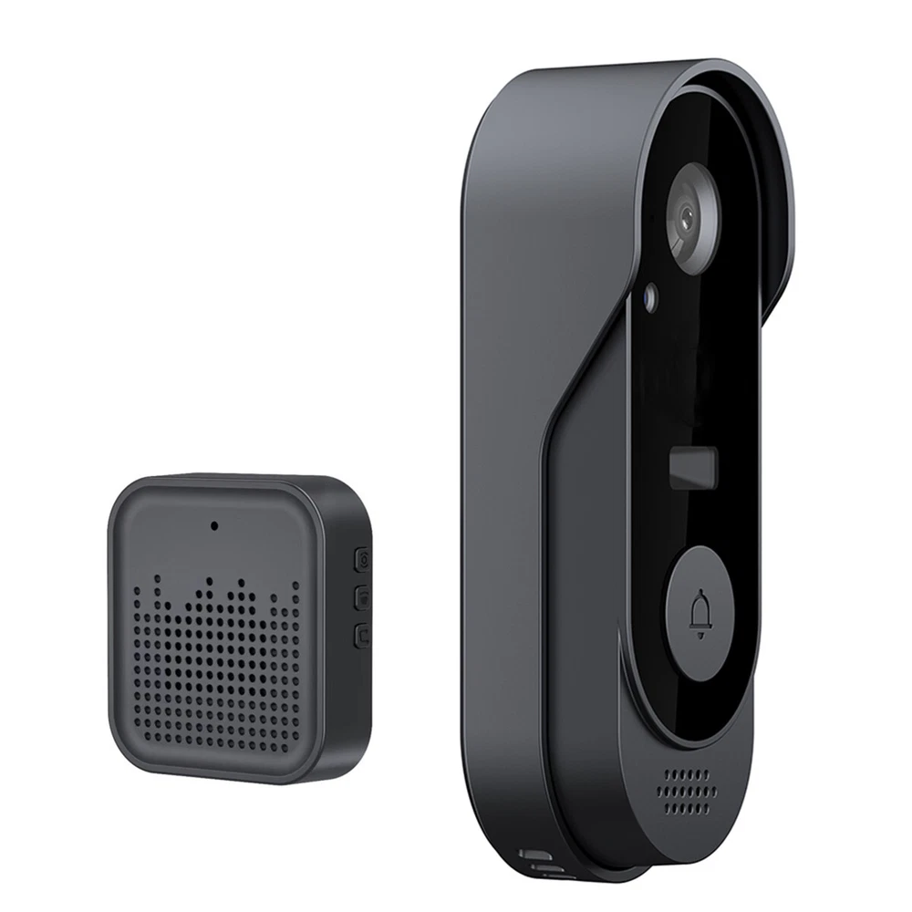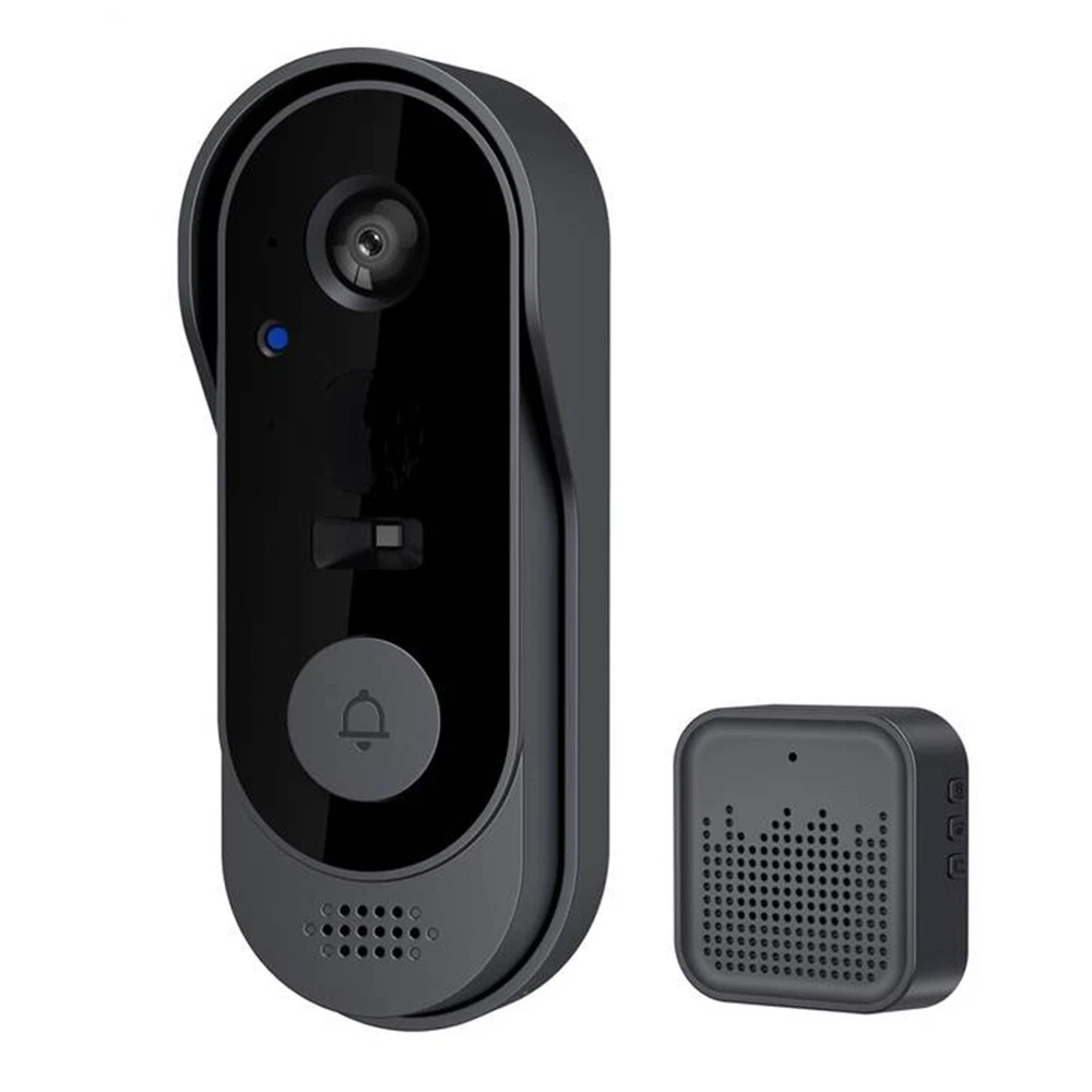 Description: 1. Material: High-quality ABS material, light and durable, long service life 2. Lens: This video doorbell has an ultra-high-definition camera lens and a 125° wide-angle lens to protect your home security around the clock. 3. Video call: Built-in two-way microphone, when someone rings the doorbell, a push notification will be sent to the mobile phone, and the owner can enter the mobile phone call interface. You can check and talk to the visitor anytime and anywhere. 4. Volume adjustment: This doorbell has a strong and stable signal, easy pairing, and a transmission distance of up to 50 meters. The volume and ringtone can be adjusted according to your preferences. 5. Infrared night vision: Built-in high-quality IR LED lamp beads and light sensor, the picture is clear at night. When the ambient light drops to 2 Lux, it can also automatically switch from day mode to night mode. 6. Battery use: The doorbell has a built-in 1000 mAh rechargeable lithium battery. It can be used continuously for 2 to 4 months after being fully charged. There is no need for frequent charging. The bell is powered by USB and has a long battery life. 7. Storage method: This doorbell supports TF card + cloud storage. When a visitor presses the doorbell, it can capture the visitor's picture and save the record to the APP, so that the mobile APP can view past pictures at any time, which is safer and more secure. 8. Network connection: Supports 2.4GHz network connection and "Tuya" APP connection. The mobile phone can quickly wake up the device within 1 second remotely, making the work more stable. 9. Portable installation: 2 installation methods, can be pasted with adhesive or drilled, convenient and worry-free Specification: Name: Smart Wireless Video Doorbell Security Camera Infrared Intercom Doorbell Waterproof Doorbell Colour: Black Working temperature: -10°-60° Viewing angle: 125° Main control processor: Broadcom/BK7252 Power input: DC5V/2A Power supply mode: 100-240v, 50-60Hz Battery used: Built-in rechargeable lithium battery Battery capacity: 1000 mAh Working time: 2-4 months Night vision type: infrared night vision Storage function: TF card (maximum support 64GB -not included) + cloud storage (free forever) WiFi connection: only supports WIFI IEEE802 11b/g/n (2.4GHz), RF 433mhz Voice system: two-way intercom/mobile phone remote prompt viewing System support: Android 4.3 or iOS 9.0 or above Use APP: Tuya APP Music type: 20 pieces Recording distance: about 5m Waterproof grade: IP65 Radiator size: 13.5*3.5*2cm Receiver size: 6*3.8*2cm Gross weight of a set: 210g Package list: 1 * Receiver 1 * Transmitter 1 * Data cable 1 * Installation accessories 1 * Instruction manual