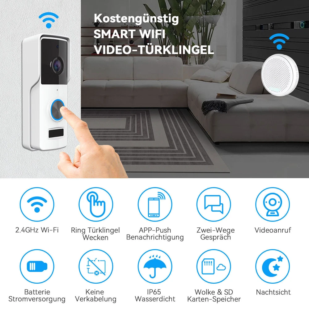 Wireless Security Smart WiFi Doorbell Intercom Video Camera Door Ring Bell Chime Select 1: IP65 Waterproof White Doorbell(Only) Select 2: IP65 Waterproof Doorbell(Only) Select 3:32G/64G/128G TF Card(Only) Warm Tips: - This package does not include a TF card .It is recommended to buy a TF card for viewing and playback.If you pay to use the APP, it is not cost-effective and you need to continue to pay before you can continue to watch the replays. -If you have any question, pls feel free to contact us first instead of opening any form of case. Contacting our customer service is the best way to better cooperate with each other,thanks a lot. -Your positive feedback are the driving force for us to move forward. Select 1: White Doorbell(Only) -No TF Card: Specification: Color:White Sensor type:1/6.5” CMOS Pixel:300,000 pixels Min llluminance:0.01Lux Viewing Angle:90° Waterproof: IP65 Waterproof Power Suppiy: USB 2.0 DC 5V-2A Battery Include: Yes (1*18650 4000mAh Battery)-Charge 4-8h for first use. Standby Power Consumption:<0.5W WIFI:Support 2.4G WIFI IEEE802.11b/g/n Model:4 modes adjustable (Ringing+ Flashing light; Ringing only; Ringing+ Lighting all the time; Flashing light only) Volume: 25-85dB Music:58 Ringtones Microphone:Captures sound for your video IR:4pcs 5mm 940nm LED Video Compression Standard: H.264 Maximum Image Resolution:640x480 Frame Rate:1~25 per second Audio:Full duplex audio Storage: TF Card (Max. 32G) -Not Included & Cloud Storage Image Settings:Support mirror Reset:Support Communication Protocol TCP/IP, HTTP, DHCP, DNS Triggering Method:Support button triggering Working Temperature & Humidity: -20℃~50℃, humidity less than 90% (without condensation) Indicator Light: Red light solids on: the camera network is abnormal Red light blinking: waiting for connecting WiFi or being connected now (faster blinking) Blue light solids on: camera running correctly Package Includes: 1x Smart Doorbell 1x 18650 4000mAh Battery Select 2: IP 65 Waterproof Smart DoorBell -No TF Card: Indicator Light: Red light solids on: the camera network is abnormal Red light blinking: waiting for connecting WiFi or being connected now (faster blinking) Blue light solids on: camera running correctly Microphone:Captures sound for your video Specification: Type:Smart DoorBell Sensor type:1/6.5” CMOS Pixel:300,000 pixels Min llluminance:0.01Lux Viewing Angle:90° IR:4pcs 5mm 940nm LED Video Compression :Standard H.264 Maximum Image Resolution: 640x480 Frame Rate:1~25 per second Audio: Full duplex audio Storage:TF Card (Max. 32G) -Not Included & Cloud Storage Image Settings:Support mirror Reset:Support Communication Protocol:TCP/IP, HTTP, DHCP, DNS WIFI: Support 2.4G WIFI IEEE802.11b/g/n Triggering Method:Support button triggering Working Temperature & Humidity:-20℃~50℃, humidity less than 90% (without condensation) Waterproof: IP65 Power Suppiy: USB 2.0 DC 5V-2A (With 2*18650 2400mAh Battery (charge 4-8h for first use ) Standby Power:Consumption <0.5W Volume:25-85dB Music:58 Ringtones Model: 4 modes adjustable (Ringing+ Flashing light; Ringing only; Ringing+ Lighting all the time; Flashing light only) Select 3:32G/64G/128G TF Card(Only) -No Doorbell Payment Delivery details Warranty & Return About us Contact us Payment 1. We accept payment via Paypay only. 2. All payments must be prepaid. Delivery details 1. Items are generally shipped out within 24-48 hours after your payment has been cleared (Sat. & Sun. excluded.) 2. Orders from the United States will all be shipped out via USPS and FedEx. The shipment usually takes 3-7 business days( Exclude public holiday), if you need the item urgently, please contact us for detail before purchase. 3. We ship to US ONLY and do not support Collection. 4. All items will be shipped to buyer's paypal address. Please check your paypal address before place the order. 5. We are not responsible for wrong or undeliverable address. We reserve the right to charge the shipping fee again for returned items due to wrong address. Warranty & Return 1. We provide 30 days money back on non-defective, undamaged, unused and resalable products. Product is not eligible for refund after the 30-day refund period has expired. 2. Our warranty does not extended to any products that are physically damaged or that are not under normal operating conditions as a result of misuse or improper installation on the buyer/user's part. 3. For all returned products, Please contact us for the returning address and Pls no return case. 4. In all cases, buyers pay shipping fees at their own cost to return products for exchange or refund. We will be responsible for the postage of replacements. Refund will be made upon receipt of the returned item. About us We are a store, mainly run laptop accessory. Such as battery , ac adapter etc. All item passed FCC / CE / ROHS certificates. Help buyer reduce the risk of damage, fire, dangerours mostly. We work with a good quality OEM supplier and factory. Help you and us save money greatly. Contact us Currently, our after-sale workmate good at English. it is better send eBay message in English. You will get our most effetive feedback in time. If you have any question, just send a eBay message is a best solve way between us. If you satifaction our service, leave 5 stars and postifive feedback at our store. It will help our small store development greatly. We will very appreciated for your doing.