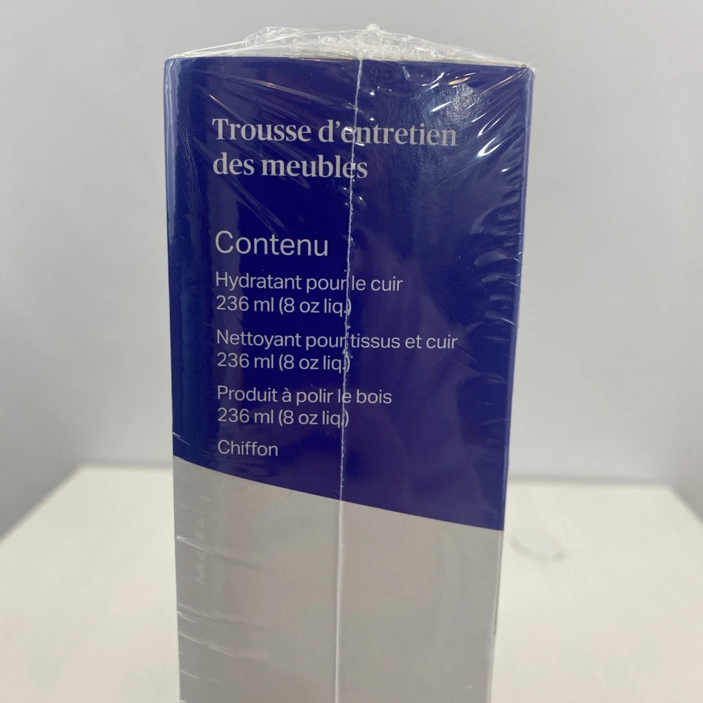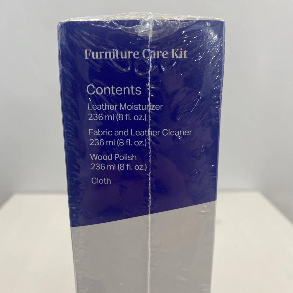 This is a Zucora Home Leather Fabric Wood Furniture Care Kit that includes wood polish, cloth, leather moisturizer, and fabric and leather cleaner. It is designed for cleaning and maintaining furniture made of leather, fabric, and wood. The kit is new and sealed, offering a convenient solution for caring for various types of furniture.