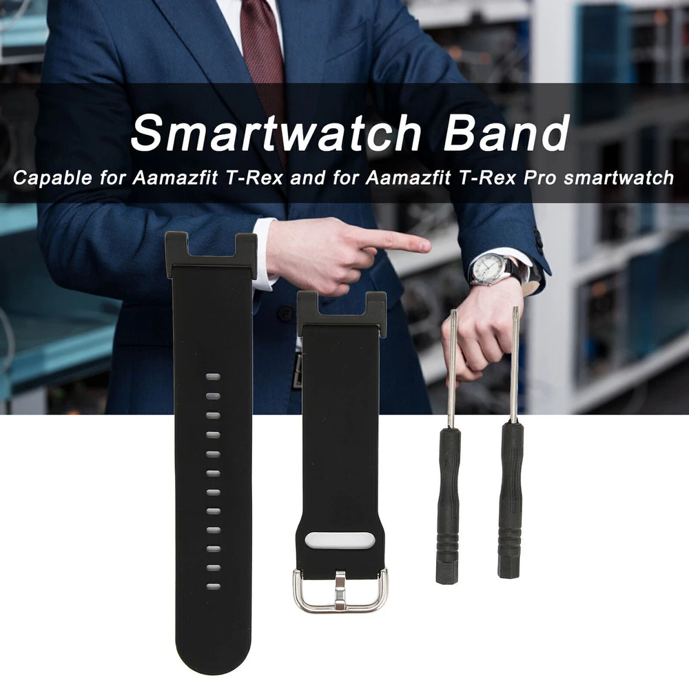 Feature: 1. Silicone Material: Made of high quality silicone material with fine craftsmanship, that the strap is non slip, skin friendly, lightweight, breathable, also comfortable to wear. 2. Perfect Match: Manufactured with accurate size and exquisite craftsmanship, has a close fitting, simple for installation and removal in short time, will not take much effort or time. 3. Soft Texture: The silicone material is soft and comfortable, so the watch can be attached to the wrist at any time, and is not easy to lose or loosen. 4. Compatible Range: Capable for A T‑Rex and for A T‑Rex Pro smartwatch, ideal replacement for the original old or damaged part. 5. Warm Prompt: The package contains only one watch wrist strap and 2 screwdrivers, other accessory like watch itself need to be prepared by yourself, please make sure you are clear about this. Specification: Item Type: Smartwatch Band Material: Silicone Weight: Approx.30g/1.1oz Application: For T-Rex, For T-Rex Pro Package List: 1 x Watch Band 2 x Screwdriver