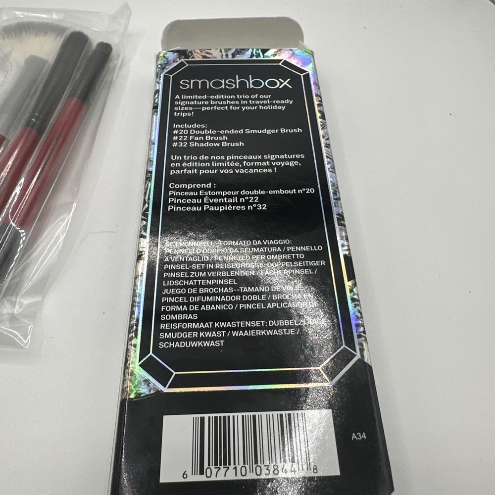 Smashbox 3 Piece Travel Brush Set Fan Smudger Shadow NIB