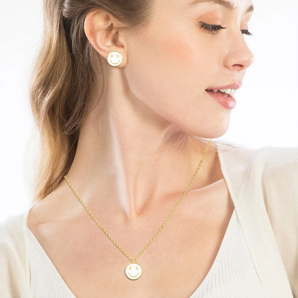 Smile Face Earrings and Necklace Jewelry Set for Women Cute Round Colorful Gold Dipped Earrings and Necklace Set for Women Product Details Color: Smile Set-White Brand: MEPLUS FASHION MPN: Does not apply UPC: Does not apply EAN: Does not apply Department : womens Date First Available : October 28, 2021 Brand, Seller, or Collection Name: MEPLUS FASHION Metal: brass plated gold Material: Brass Gem Type: No Gemstone Clasp: Lobster Clasp Model number: PN2141GWH-PE2141GWH-G2-(MEPLUS)