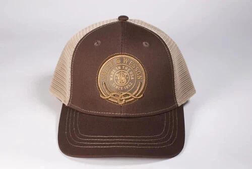 *BRAND NEW ITEM* Officially Licensed Product! Smith & Wesson Brown Twill with Tan Mesh Backing Cap Embroidered Trademark Logo on structured front panel. Adjustable snap back strap. BRAND NEW HAT w/TAG!! ALL HATS ARE SHIPPED IN BOXES FOR BEST PROTECTION!!